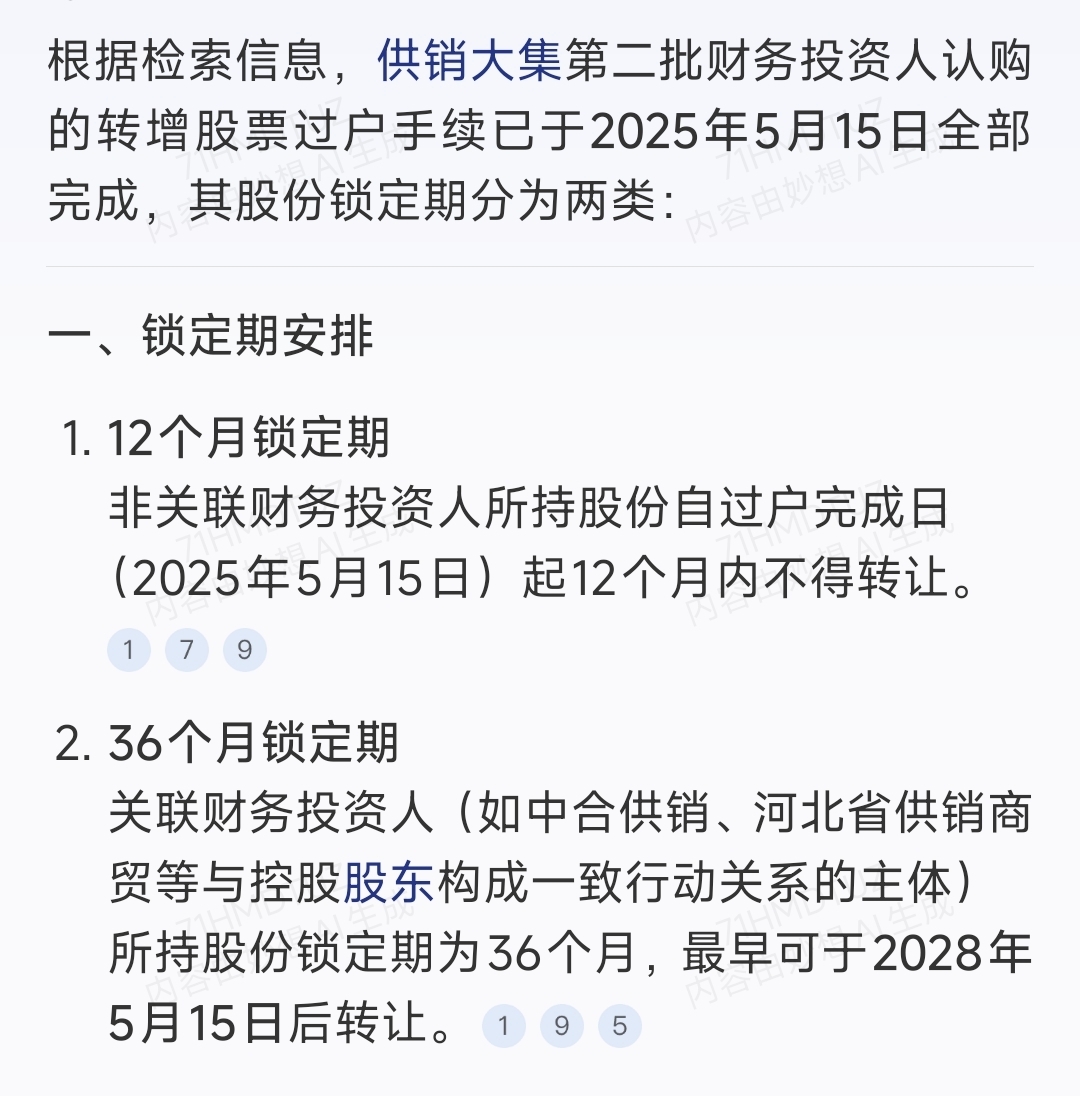 $供销大集(SZ000564)$ 有些居心不良的空沟看过来,说什么二批财投人减持。。。离最近的一期至少还有半年之久,况且有的是大股东供销旗下的一致行动人。。。