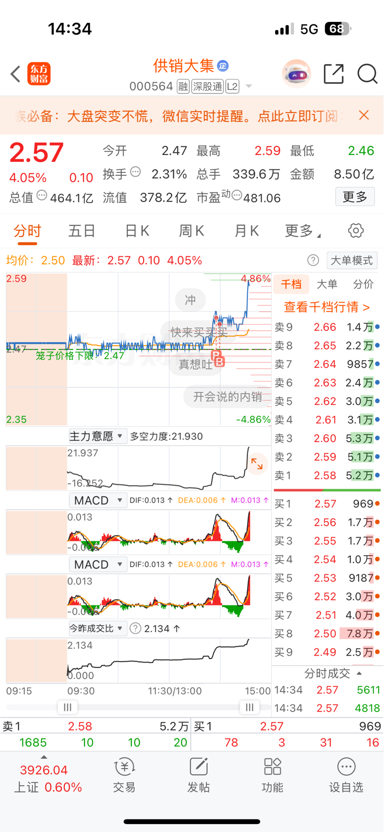 $供销大集(SZ000564)$ 追高了