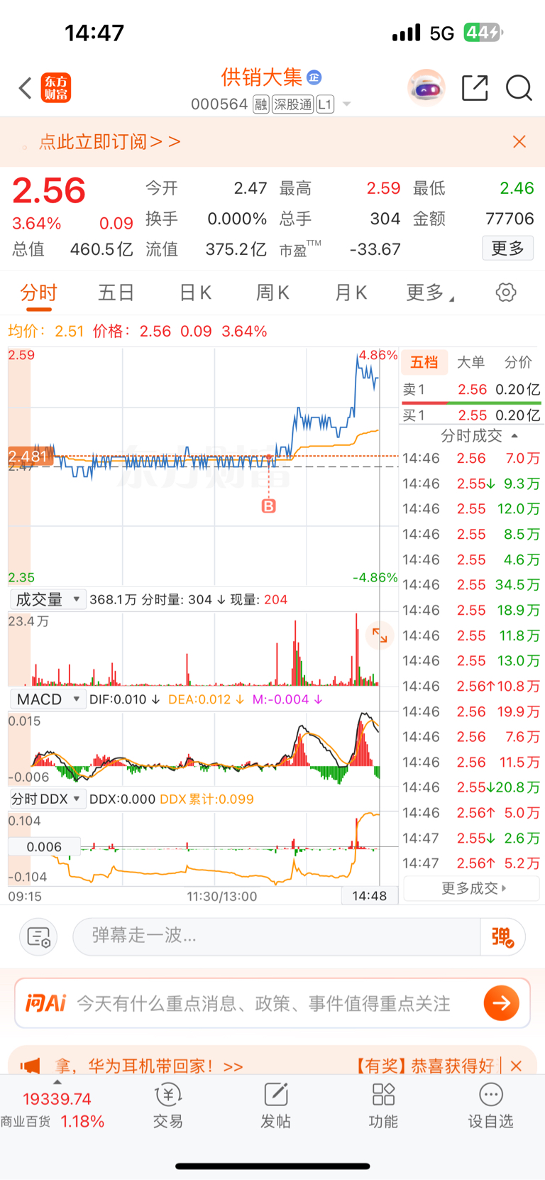 $供销大集(SZ000564)$ 看到永辉拉了 来不及只能干大集了