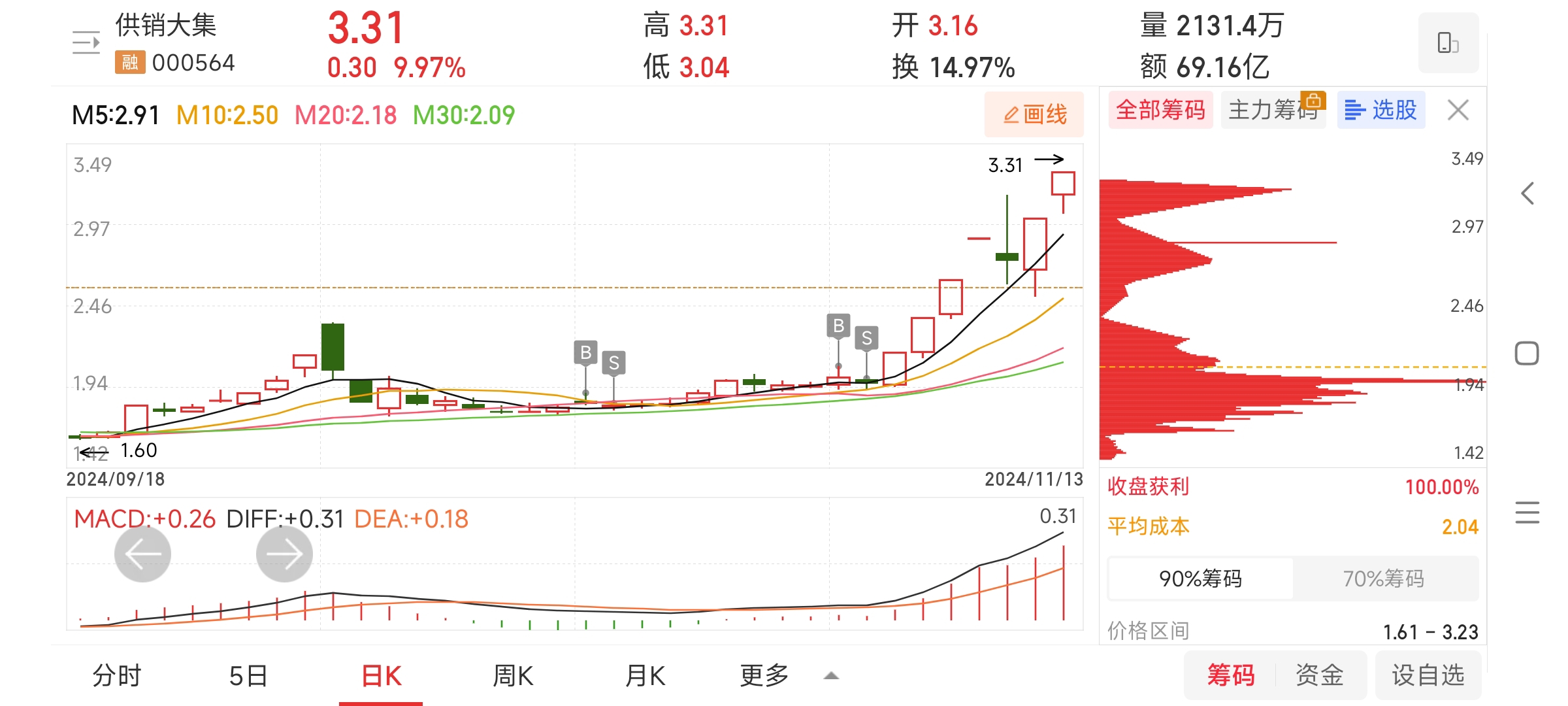 $供销大集(SZ000564)$ 心痛 去年错过了。。希望主力今天下午拉个涨停 弥补我受伤的心灵