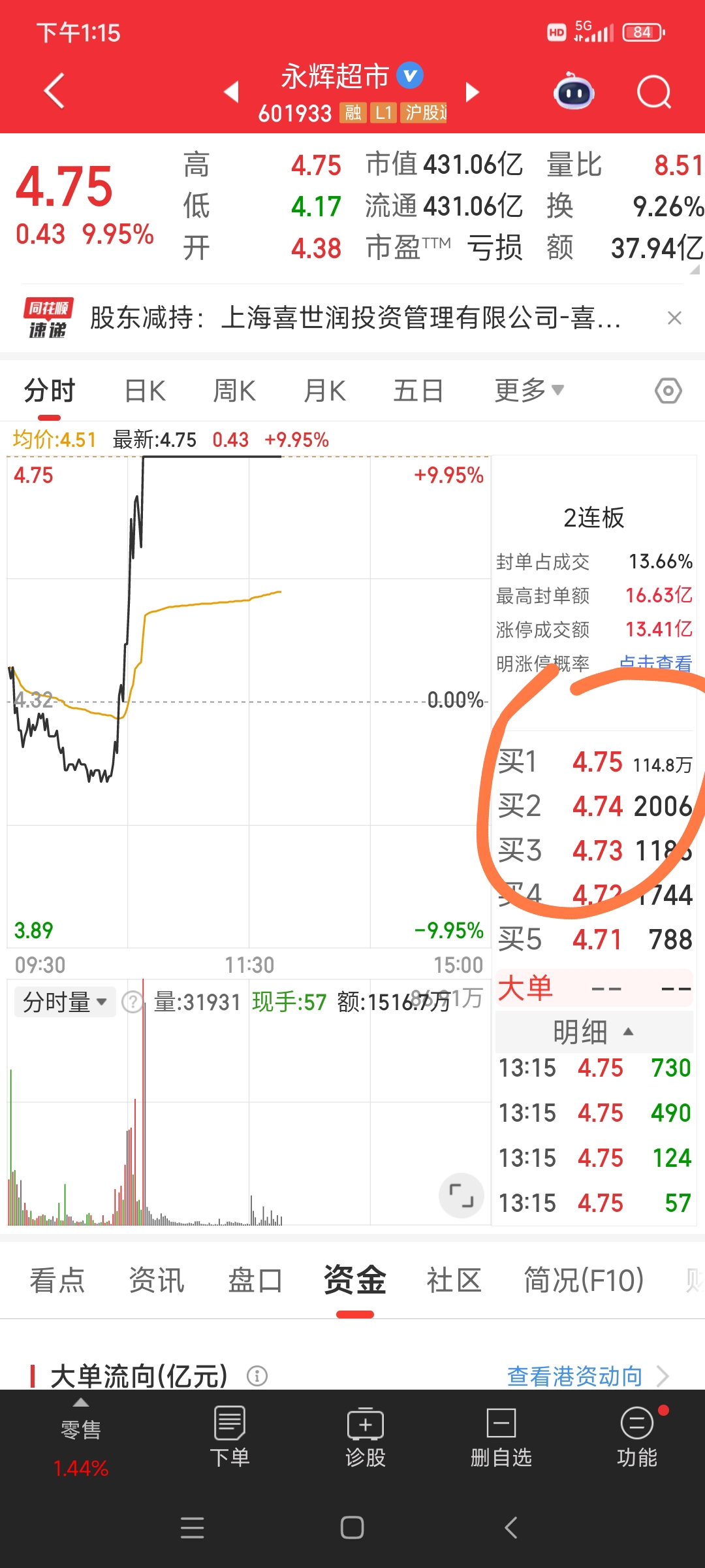 大哥永辉封单在变少。。小弟大集需拉个板助攻永辉
