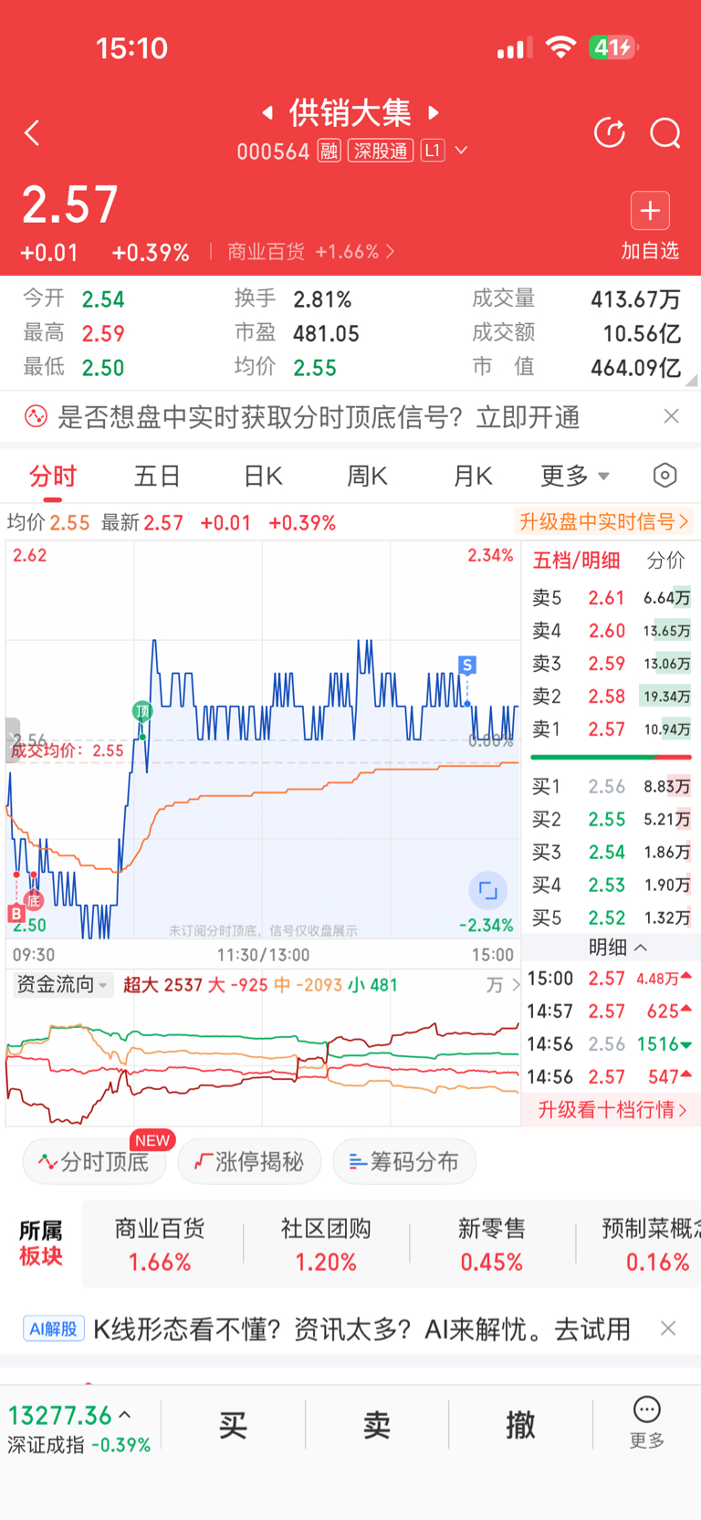 $供销大集(SZ000564)$ 2.52~2.57小t一波,仓位不变,坚定看好~