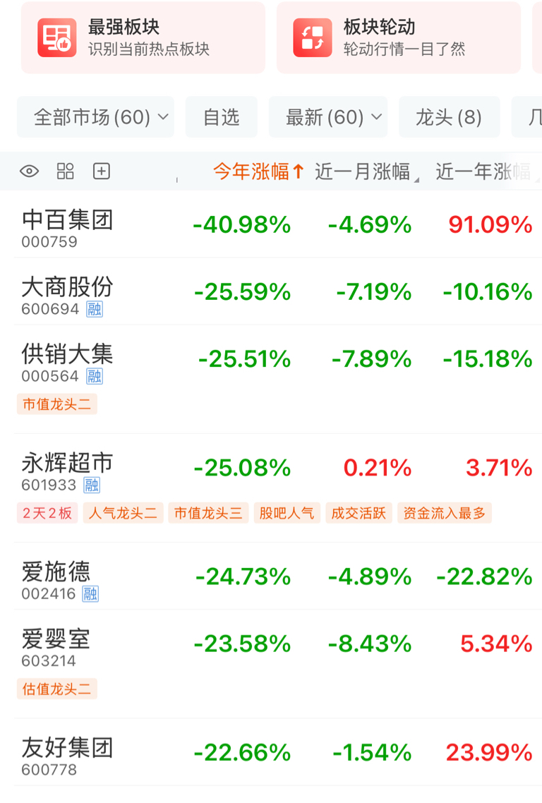 $供销大集(SZ000564)$ 今年以来的涨幅,倒数第三