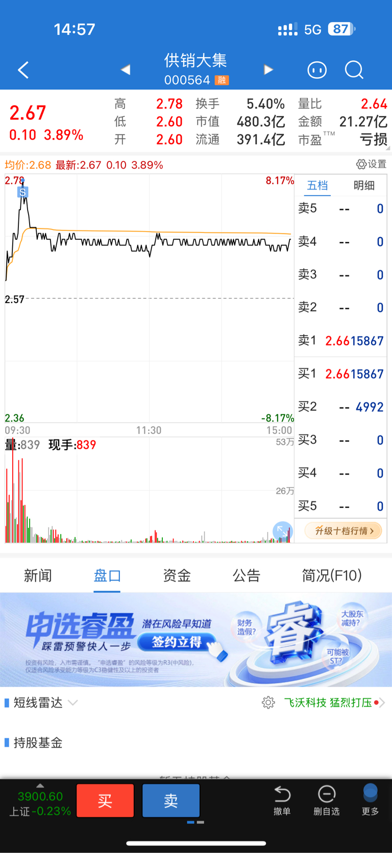 $供销大集(SZ000564)$ 卖的位置行不行,这股就不要抱有幻想,差不多就出,等着再进。这股庄真的太一般,等着继续收割庄稼。我挑战你!