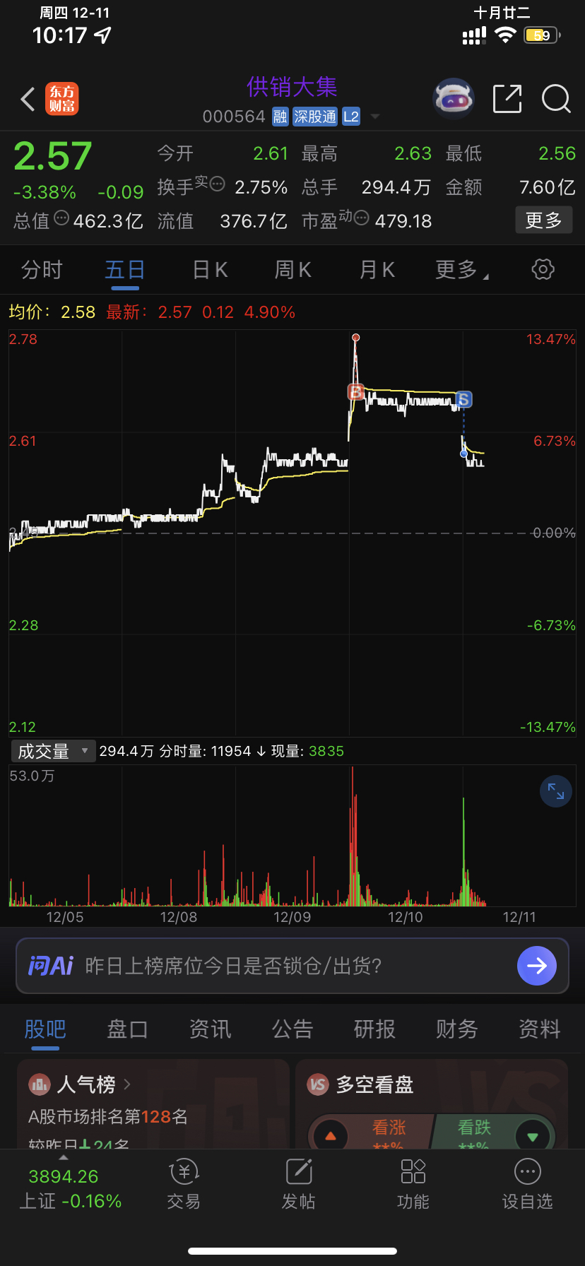 $供销大集(SZ000564)$ 错了就是错了,挨打就要立正,别的股我也许会做t,等待,这个一点想法没有。割肉出局。等不起。玄学一点基本我卖了就会涨。