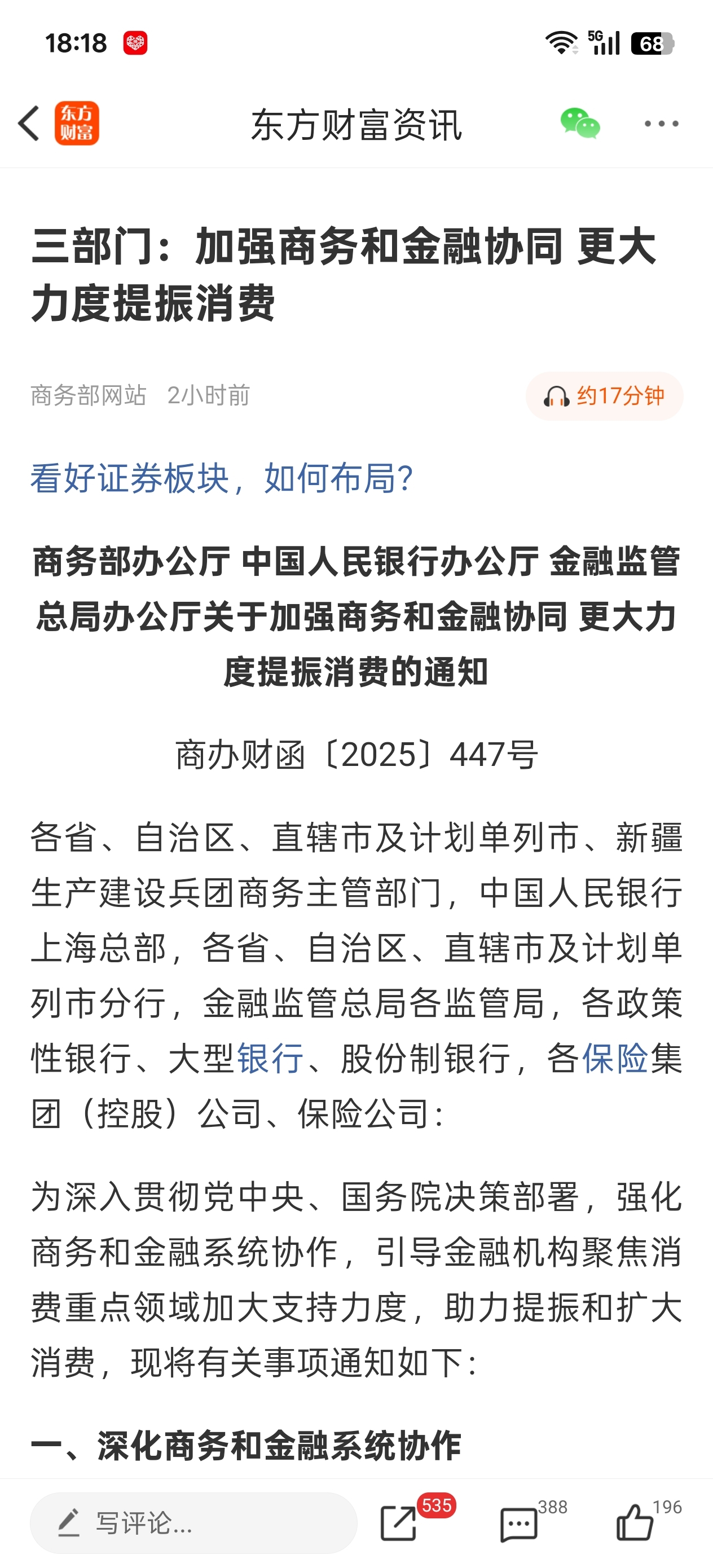 $供销大集(SZ000564)$ 三部门:加强商务和金融协同 更大力度提振消费