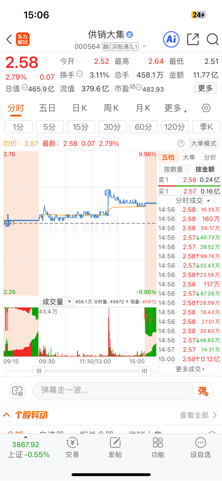 $供销大集(SZ000564)$ 都把赞点上 ,我不卖他也不会涨