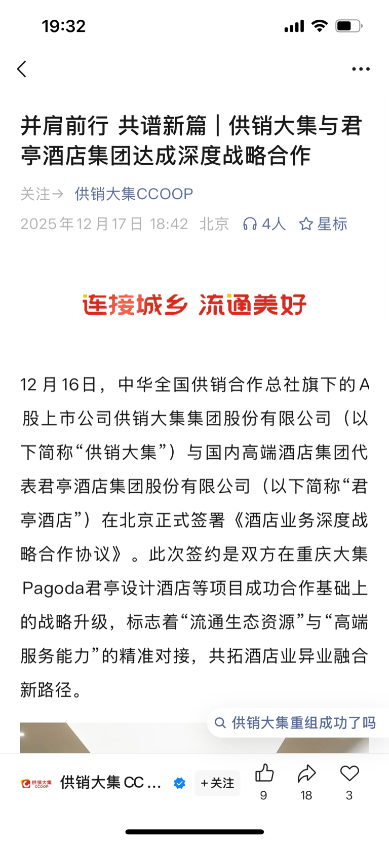 $供销大集(SZ000564)$ 今日的利好已经替大家找到了!托托们又可以尽情的吹咯