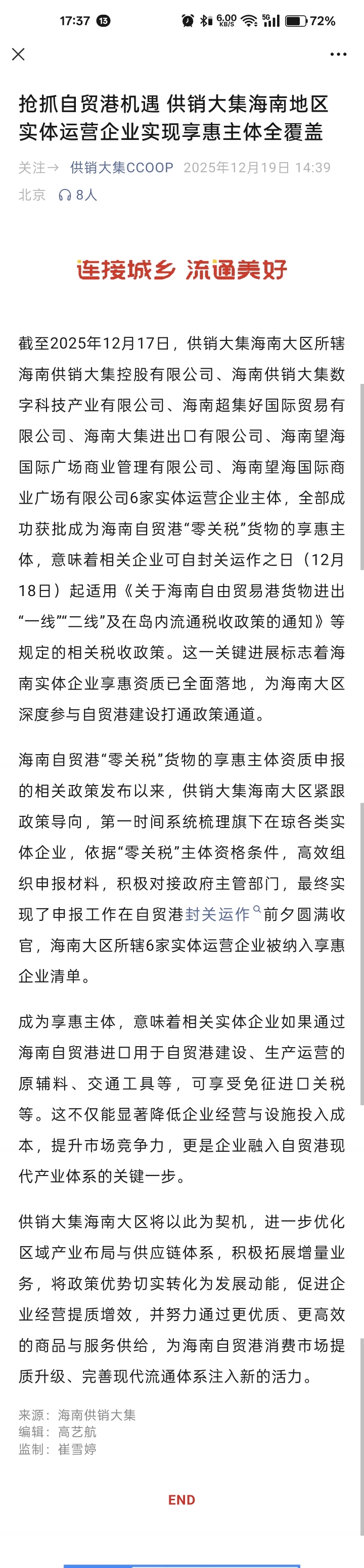 $供销大集(SZ000564)$ 布局海南