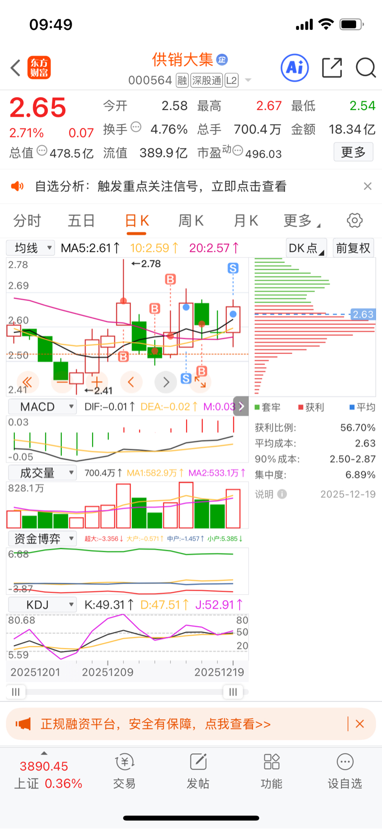 $供销大集(SZ000564)$ 来回做T,终于把在缺口时候追进去被套做到低成本