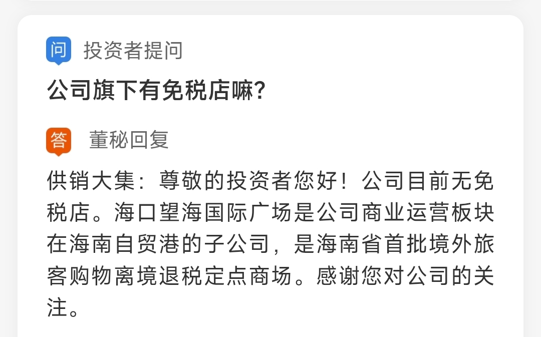 $供销大集(SZ000564)$ 在海南自贸港还需要免税店么?封关是干嘛用的?大集在自贸港根本无需免税店!