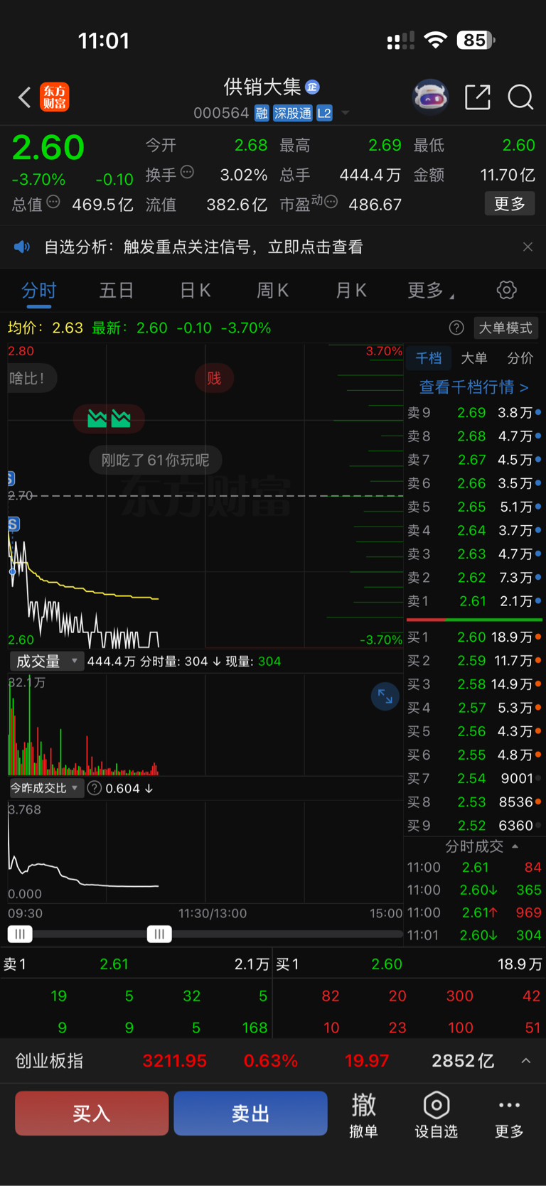 $供销大集(SZ000564)$ 跑的快刚好在昨天成本价跑光