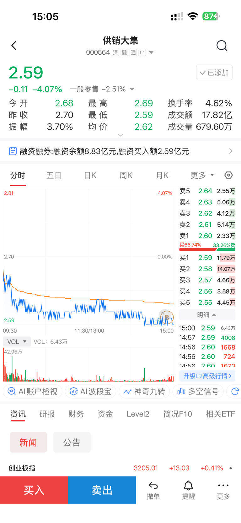 $供销大集(SZ000564)$ 2.59买的你,以为抄底,看了看评论,明天凉透了,大伙成本都多少啊?这货明天能放我出去吗