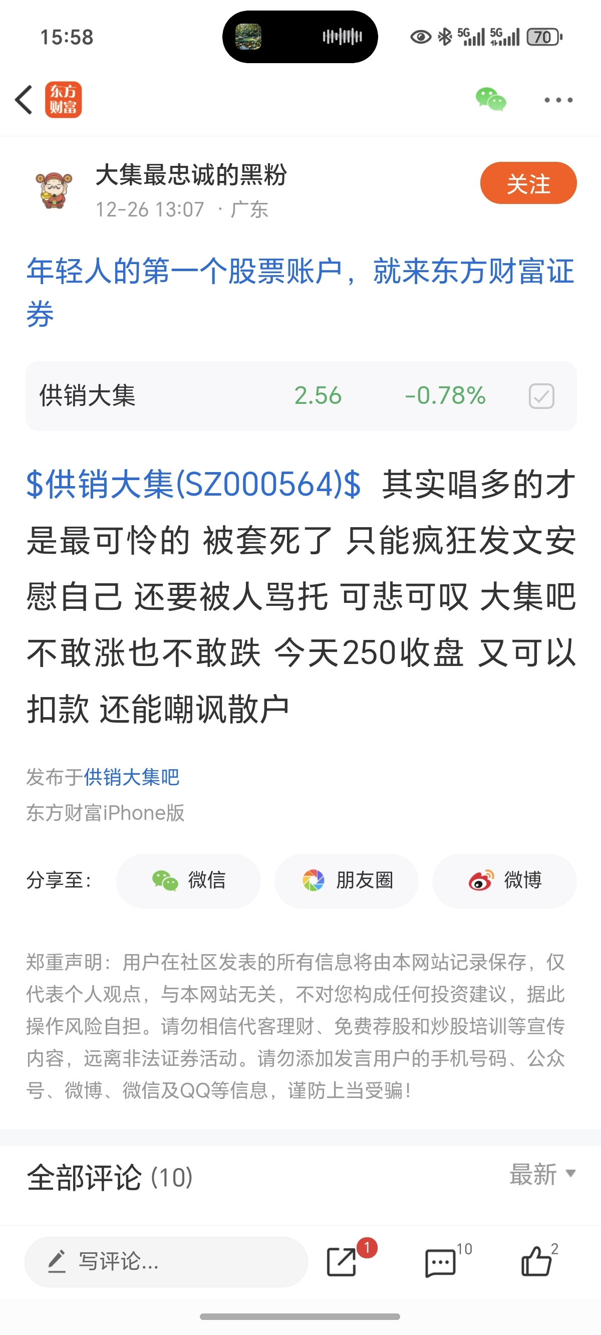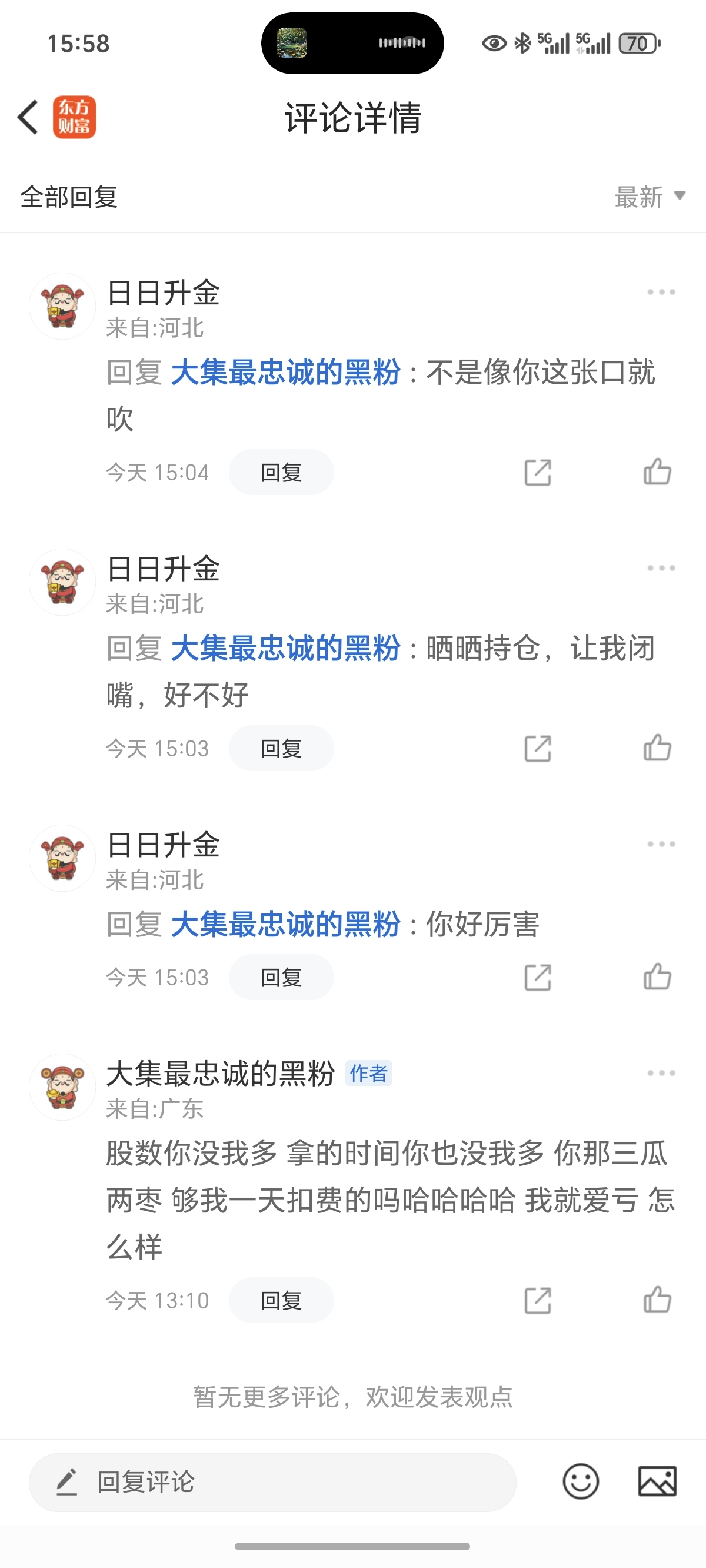 温馨提示: 1.根据《证券法》规定,禁止编造、传播虚假信息或者误导性信息,扰乱证券市场;2.用户在本社区发表的所有资料、言论等仅代表个人观点,与本网站立场无关,不对您构成任何投资建议。用户应基于自己的独立判断,自行决定证券投资并承担相应风险。《东方财富社区管理规定》