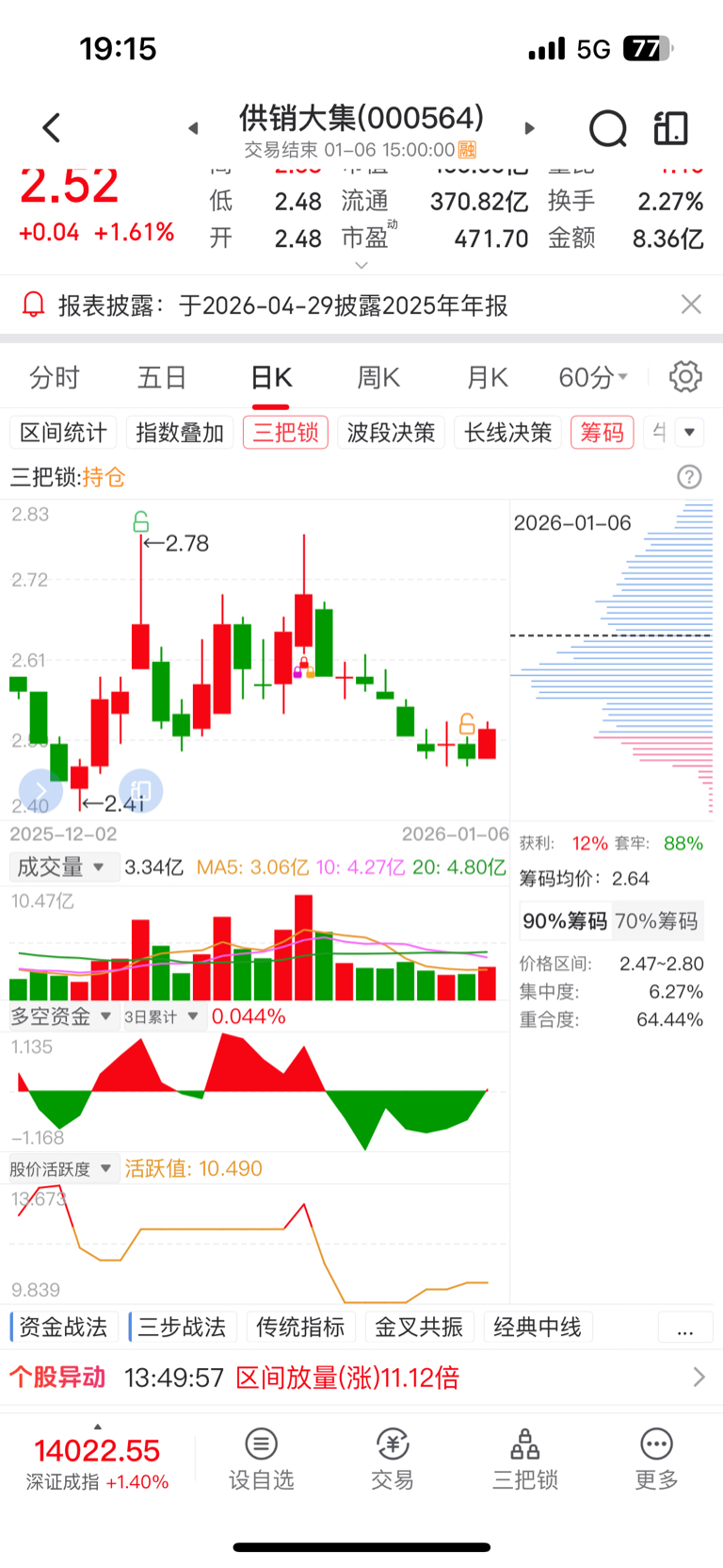 $供销大集(SZ000564)$ 指南针的三把锁太准了,三把锁一出就开始跌,止损锁一出就来阳线