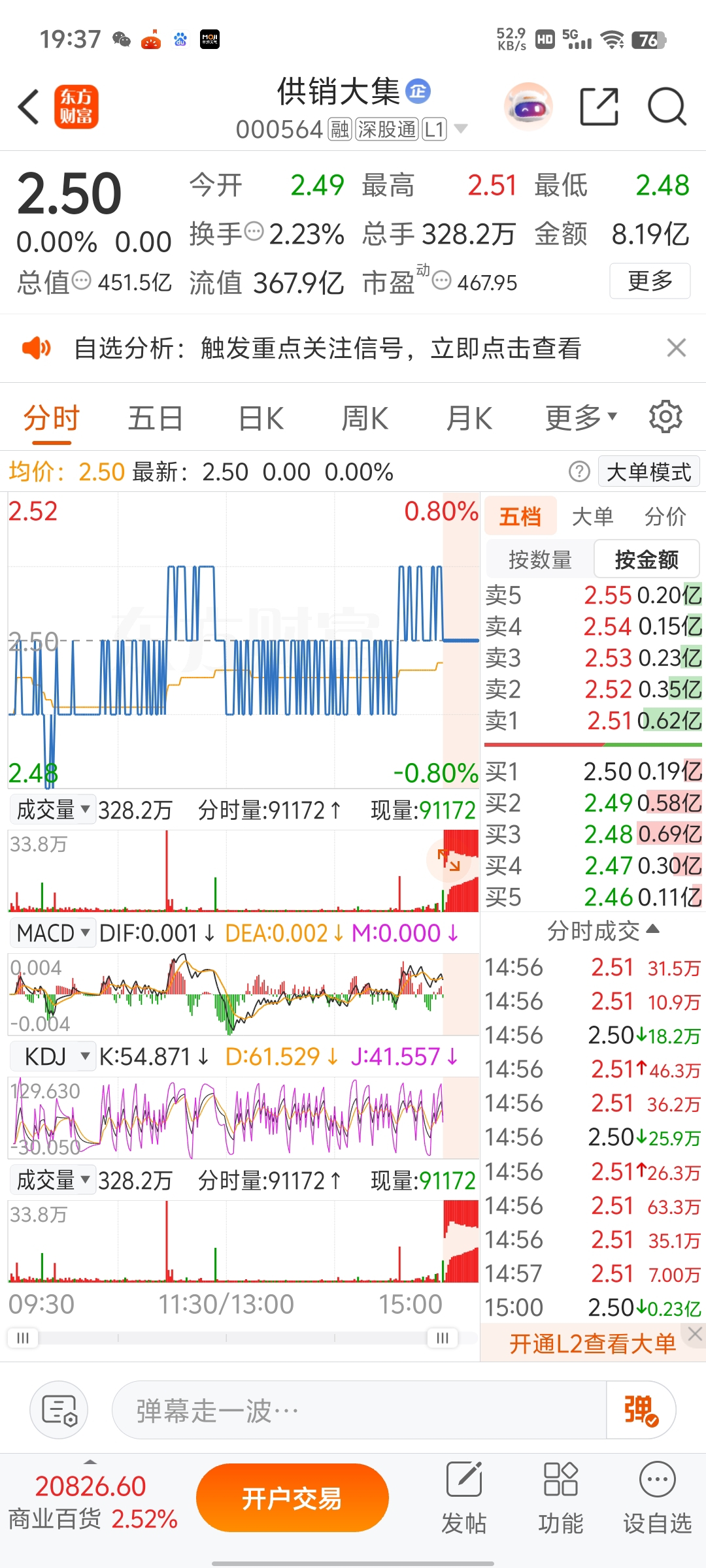 $供销大集(SZ000564)$ 就这种上压2个多亿,下托2个多亿,都是主力在出筹码,骗散户接盘,搞的上有压力下有承接的假象,除非放量上涨才是真突破,个人看法不喜勿喷
