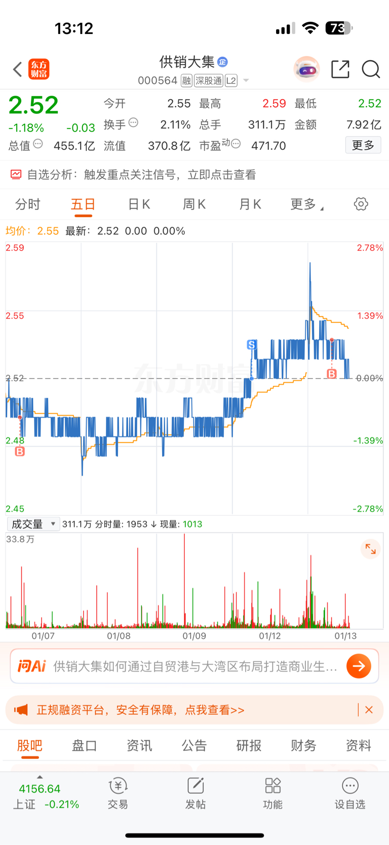 $供销大集(SZ000564)$ 大盘都拉冒烟你什么玩意