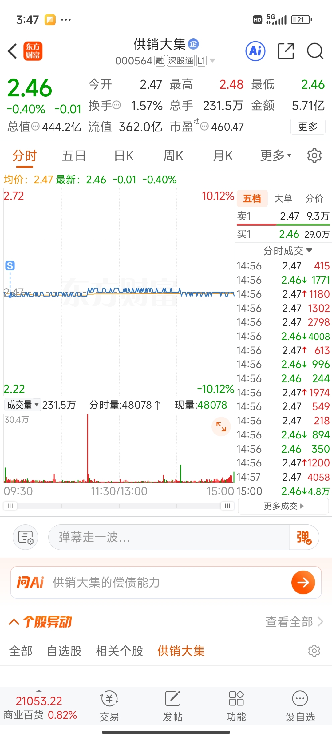 $供销大集(SZ000564)$ 今天割了去外边还赚三个点再也不买大集了