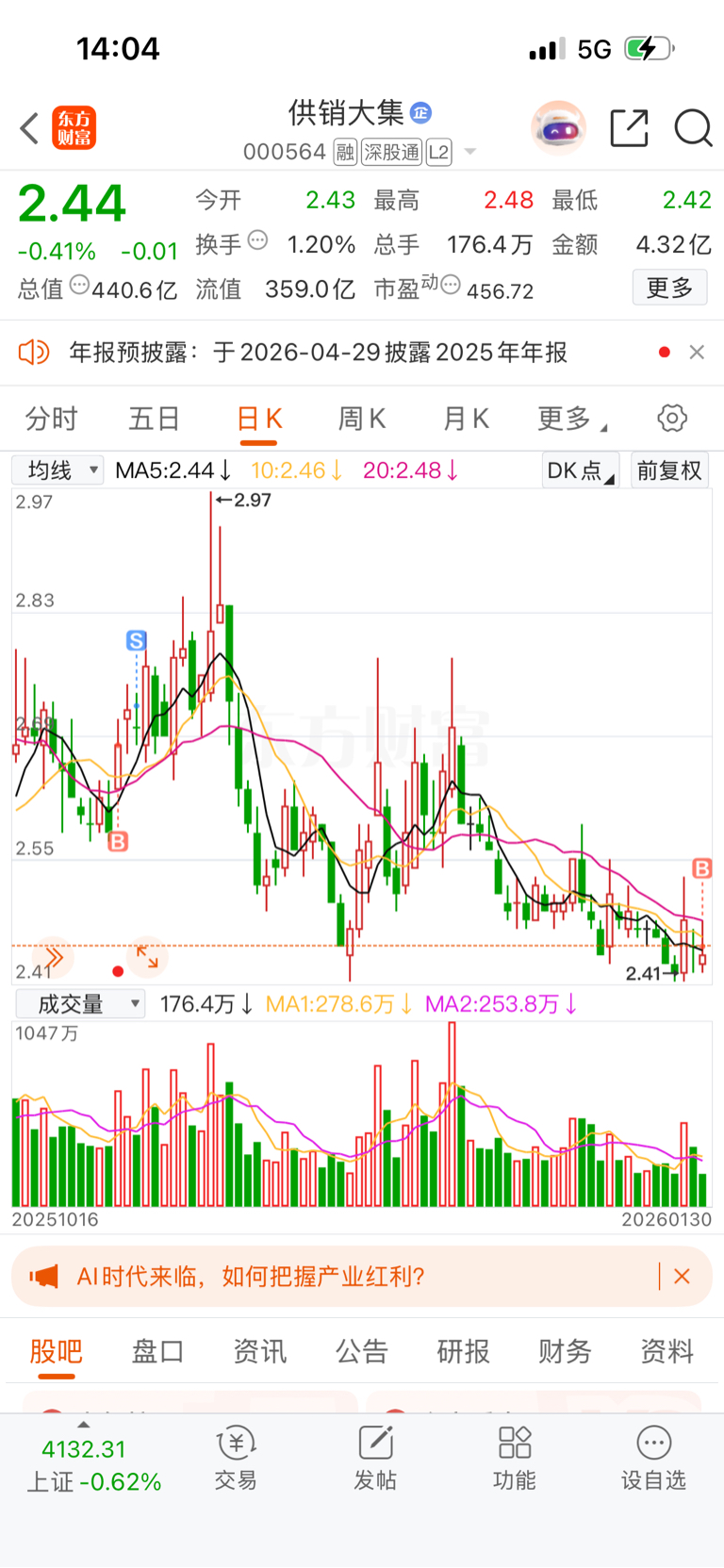 $供销大集(SZ000564)$ 应该有钱赚了