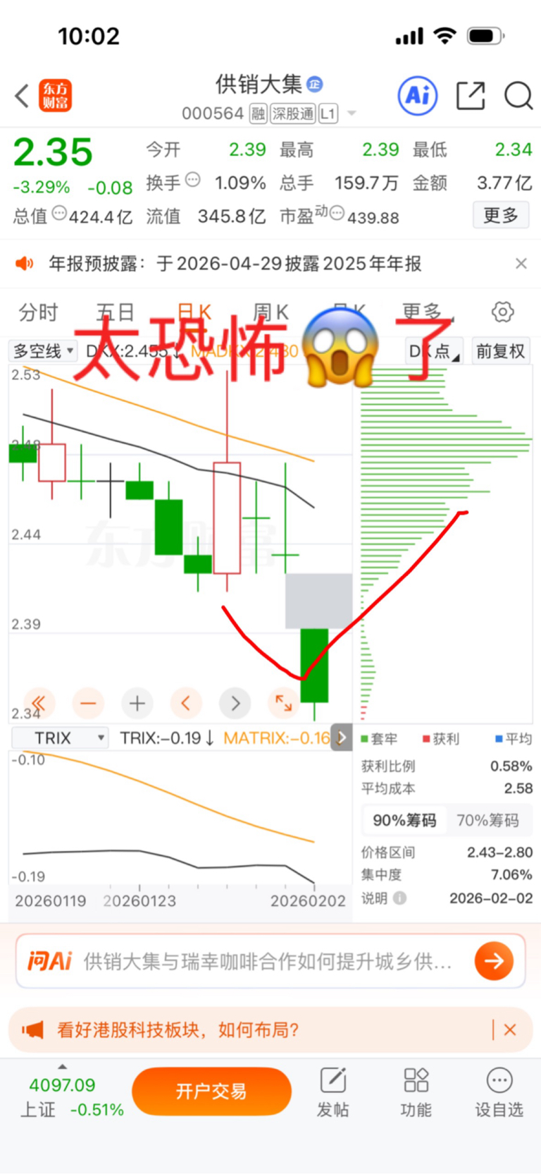 $供销大集(SZ000564)$ 看到大集的均线趋势都可怕,上面又绿油油一大片,没有风口行业,没有新兴产业,连主力庄家都放弃了自家股票,真不明白散户为什么还这么看好,纯粹是为了股价便宜吗