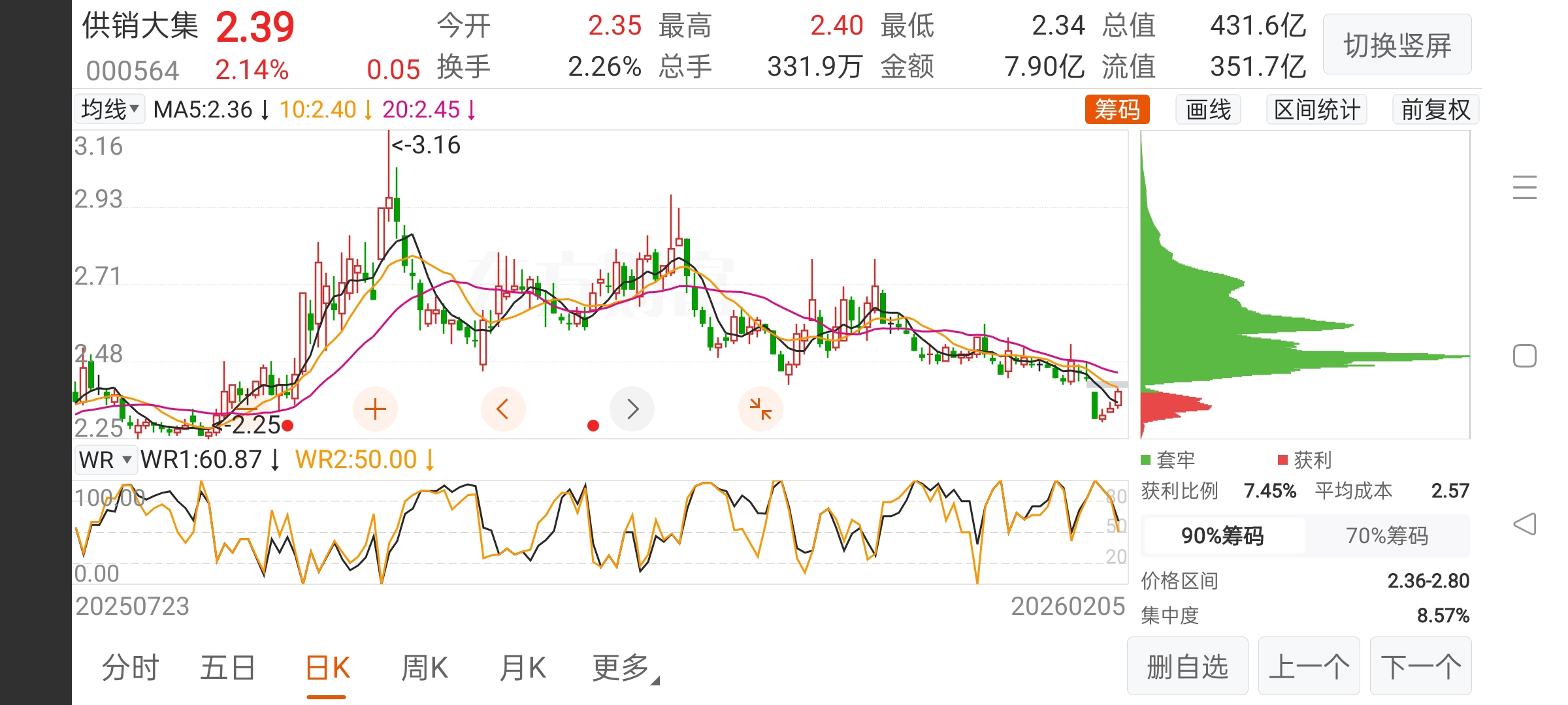 $供销大集(SZ000564)$ 看看筹码峰多少套牢的,期望不要太高……