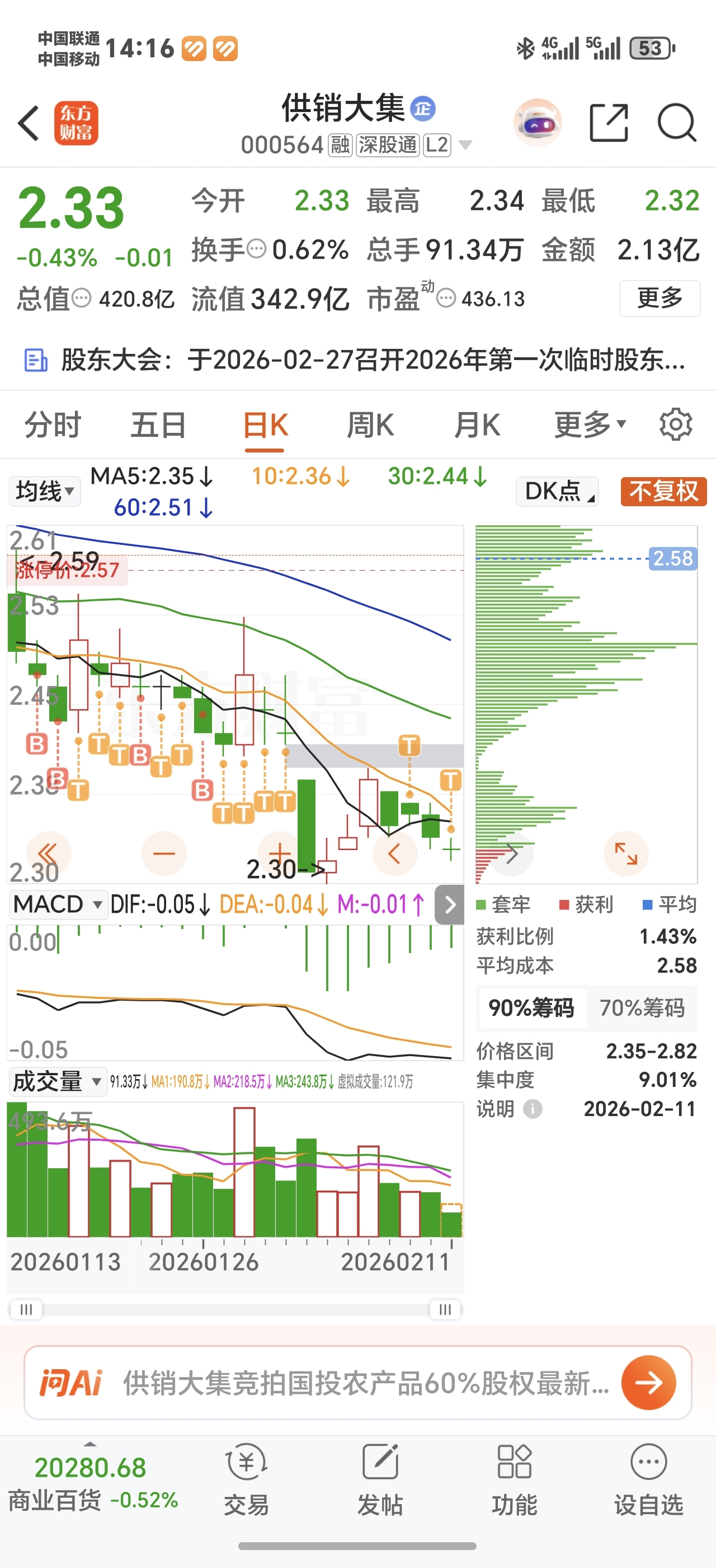 $供销大集(SZ000564)$ 每天跟着主力T一下爽歪歪,虽然也亏钱,但是迟早会回本