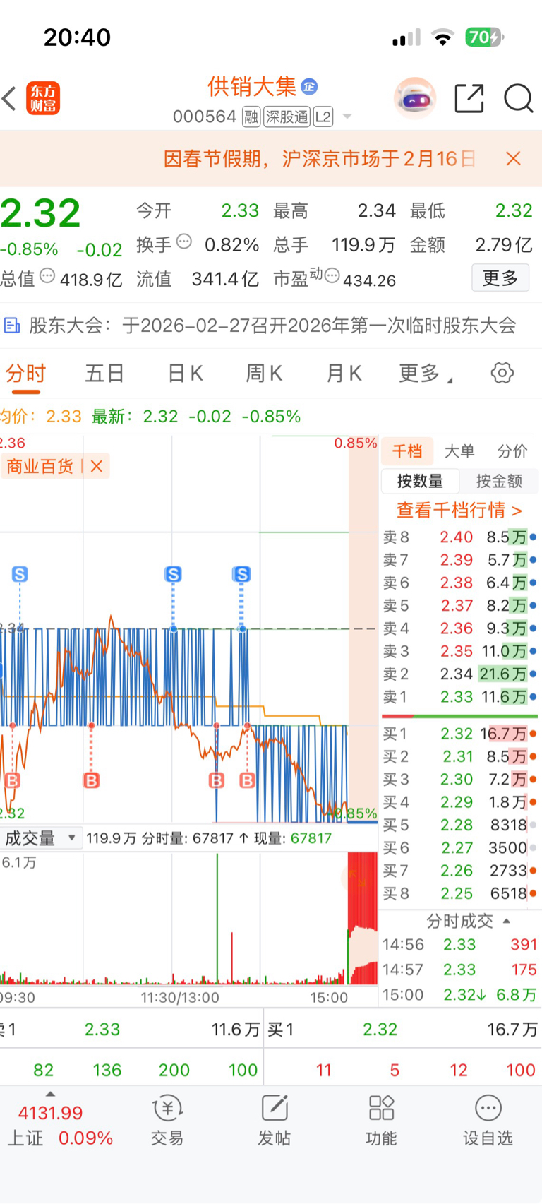 $供销大集(SZ000564)$ 领导考察供销大集只选择西安百货就是要告诉大家股价没问题,请关注商业百货板块