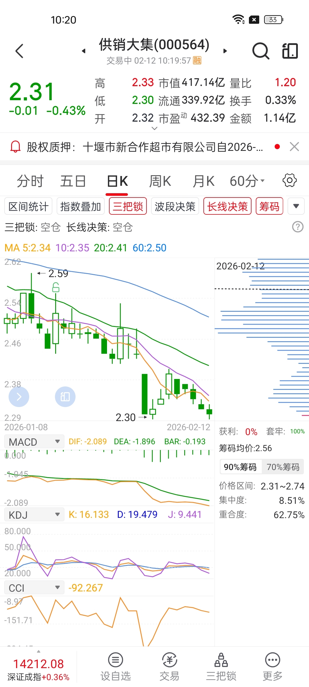 真牛逼套牢100%获利为0