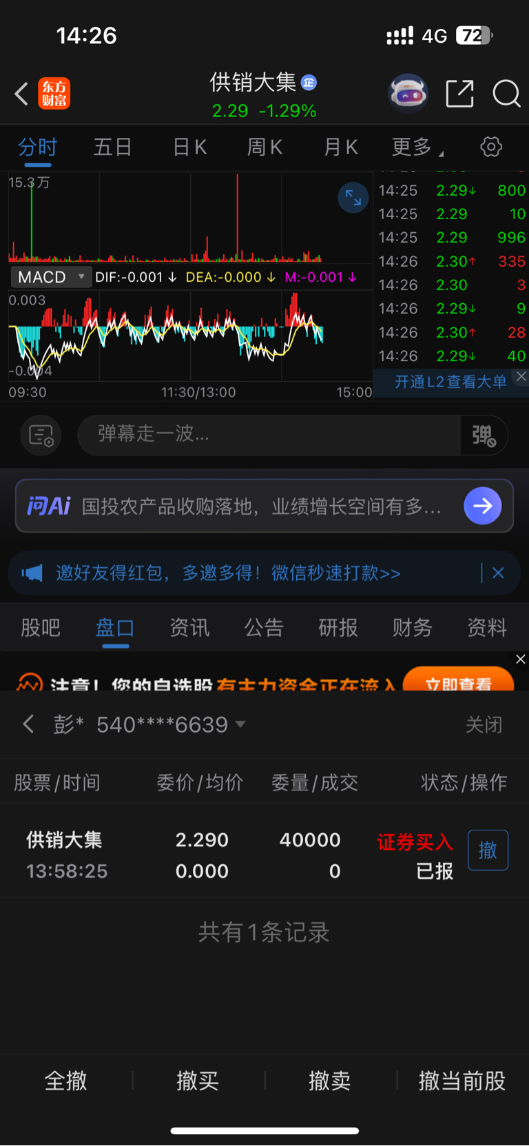 $供销大集(SZ000564)$ 挂半小时都没买到