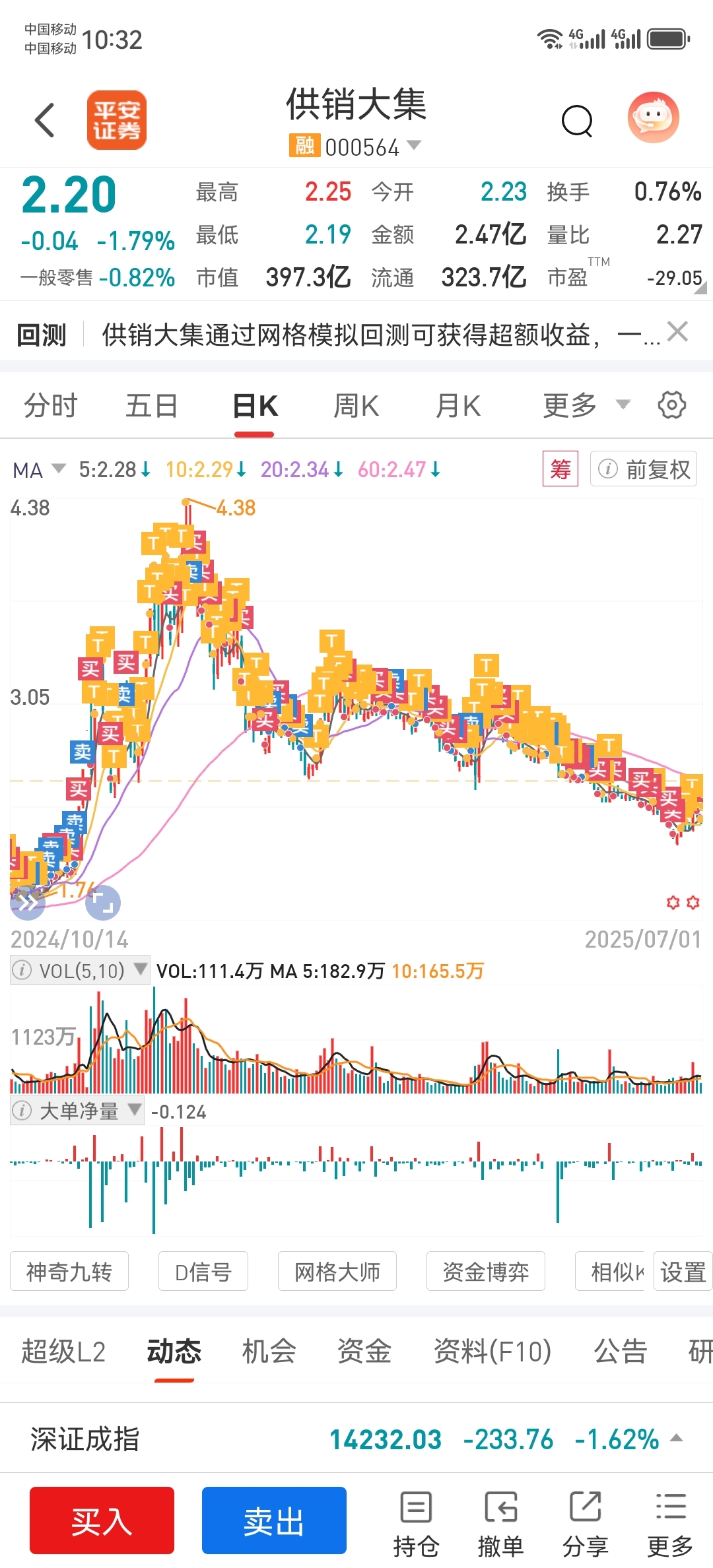 $供销大集(SZ000564)$ 浮盈加仓,控制仓位