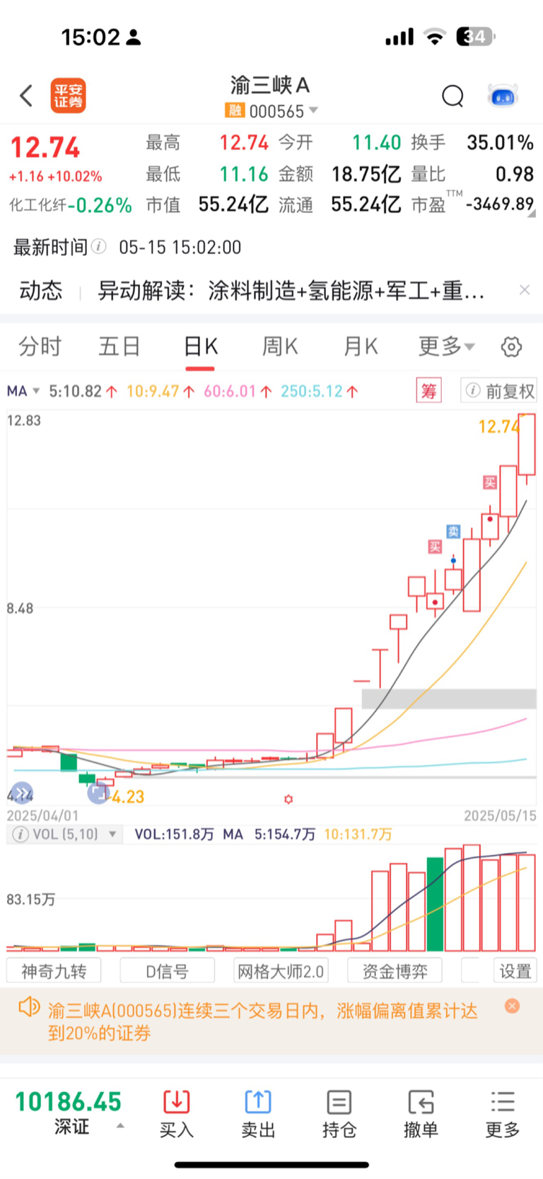 $渝三峡A(SZ000565)$ 蛇形走位反包走势,今天还没完全分离中毅达和红墙,明天看能否继续强攻分离红墙。继续卖锁