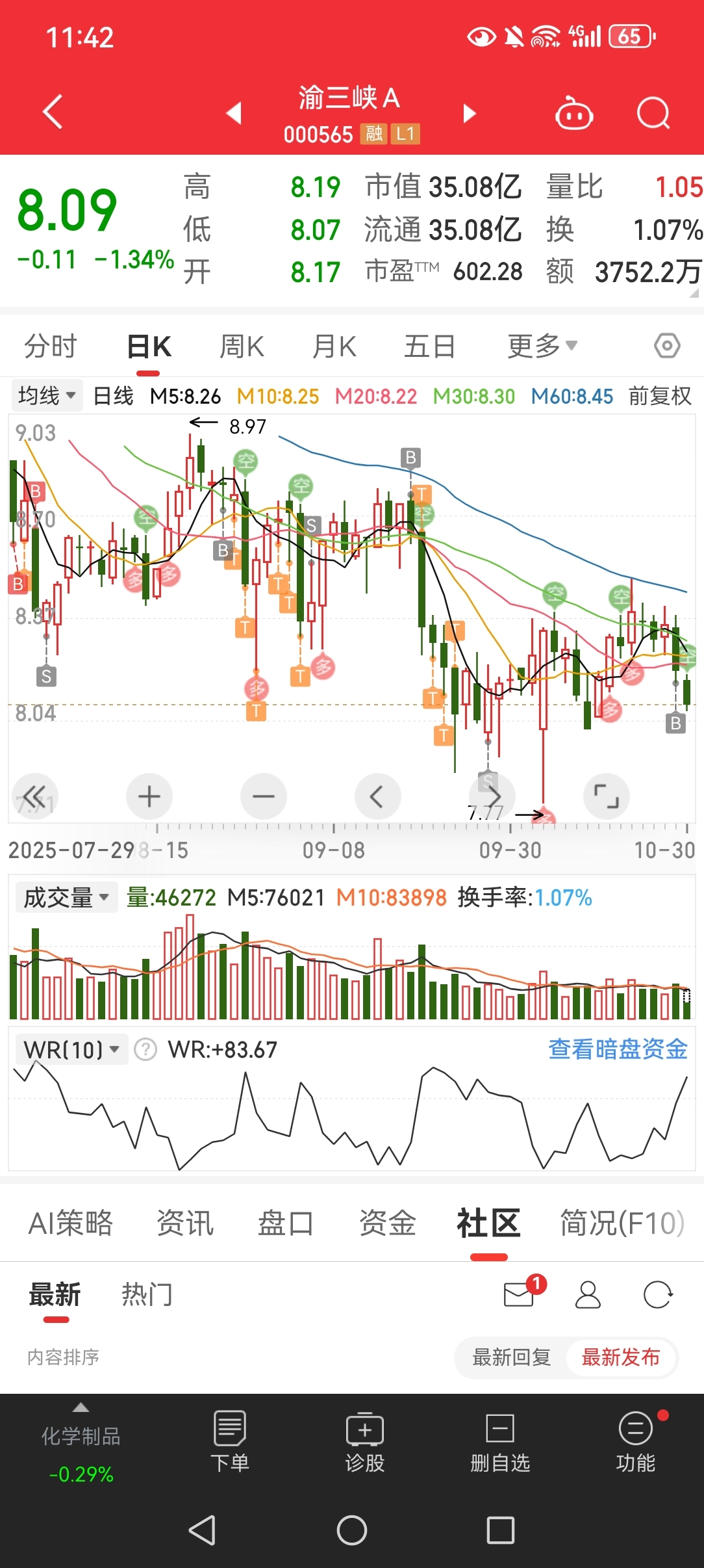 $渝三峡A(SZ000565)$ 有毒,进多少次亏多少次