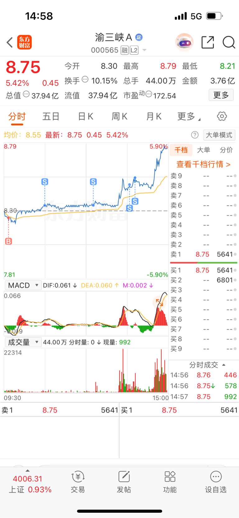 $渝三峡A(SZ000565)$ 发神经了我全卖了卖张