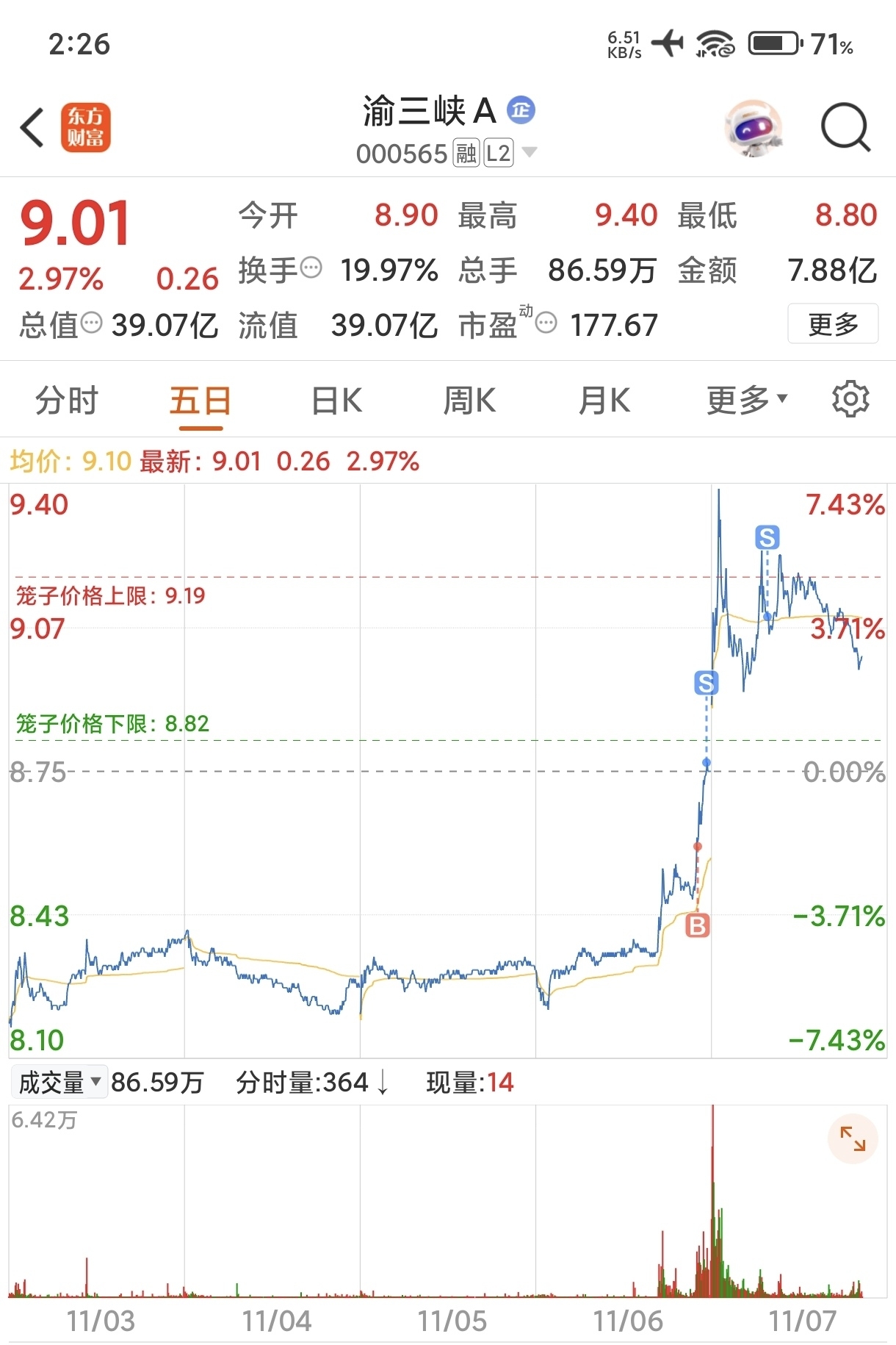$渝三峡A(SZ000565)$ 跑晚了,不过还是跑了