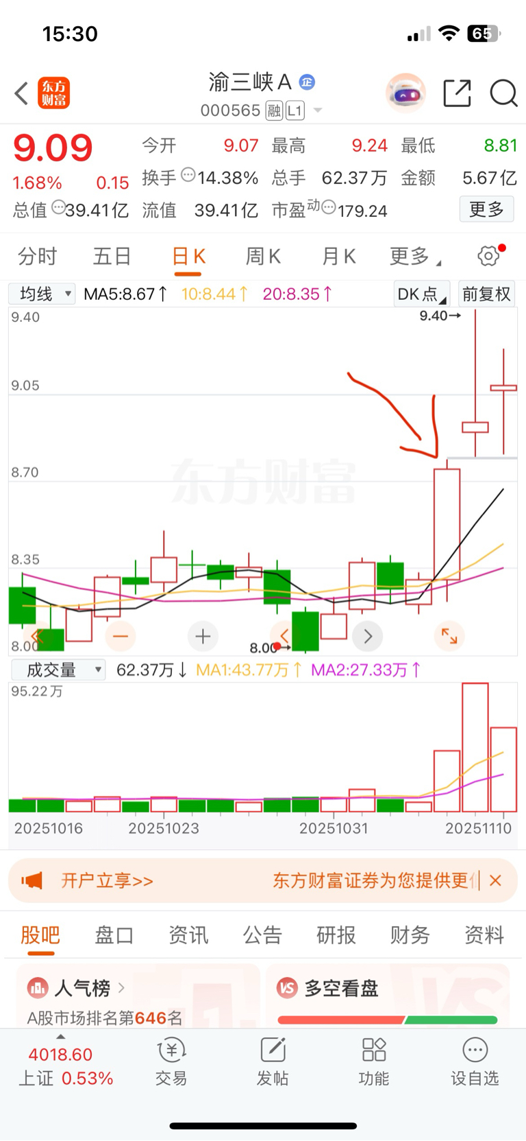 $渝三峡A(SZ000565)$ 双支撑这要开始始了了吗?