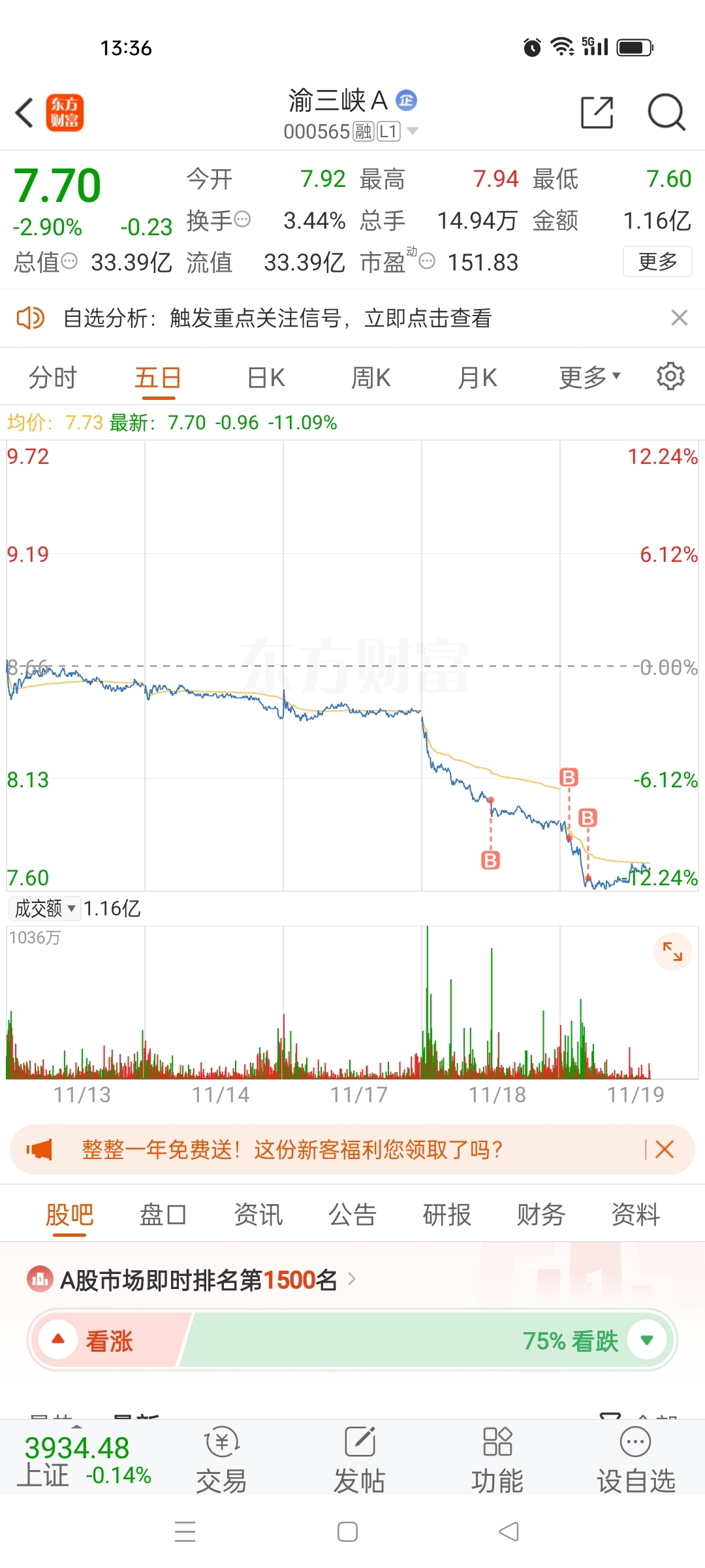 $渝三峡A(SZ000565)$ 大神们帮我看看 这样能行吗