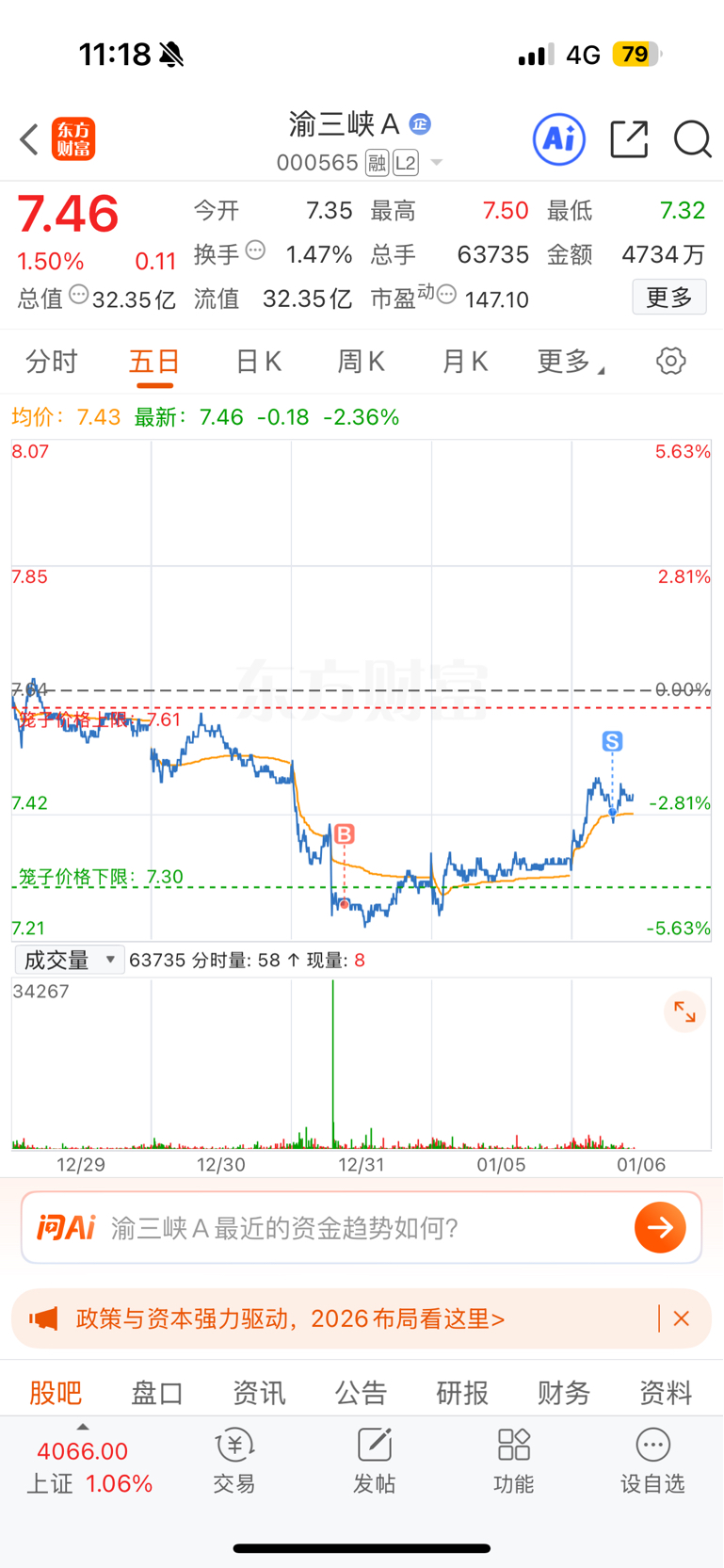 $渝三峡A(SZ000565)$ 小赚比亏好~