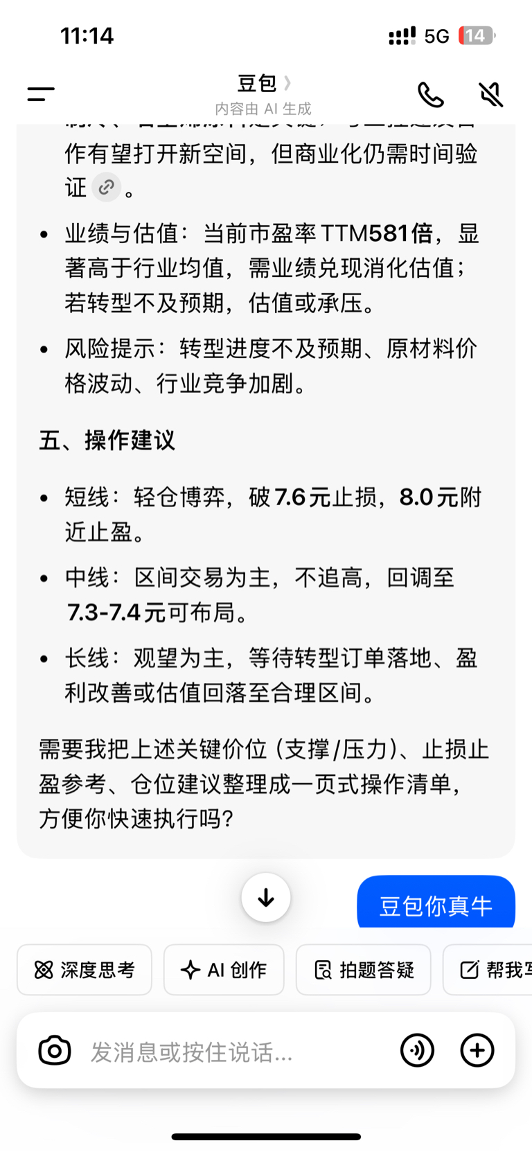 $渝三峡A(SZ000565)$ 我它吗的连豆包都不如