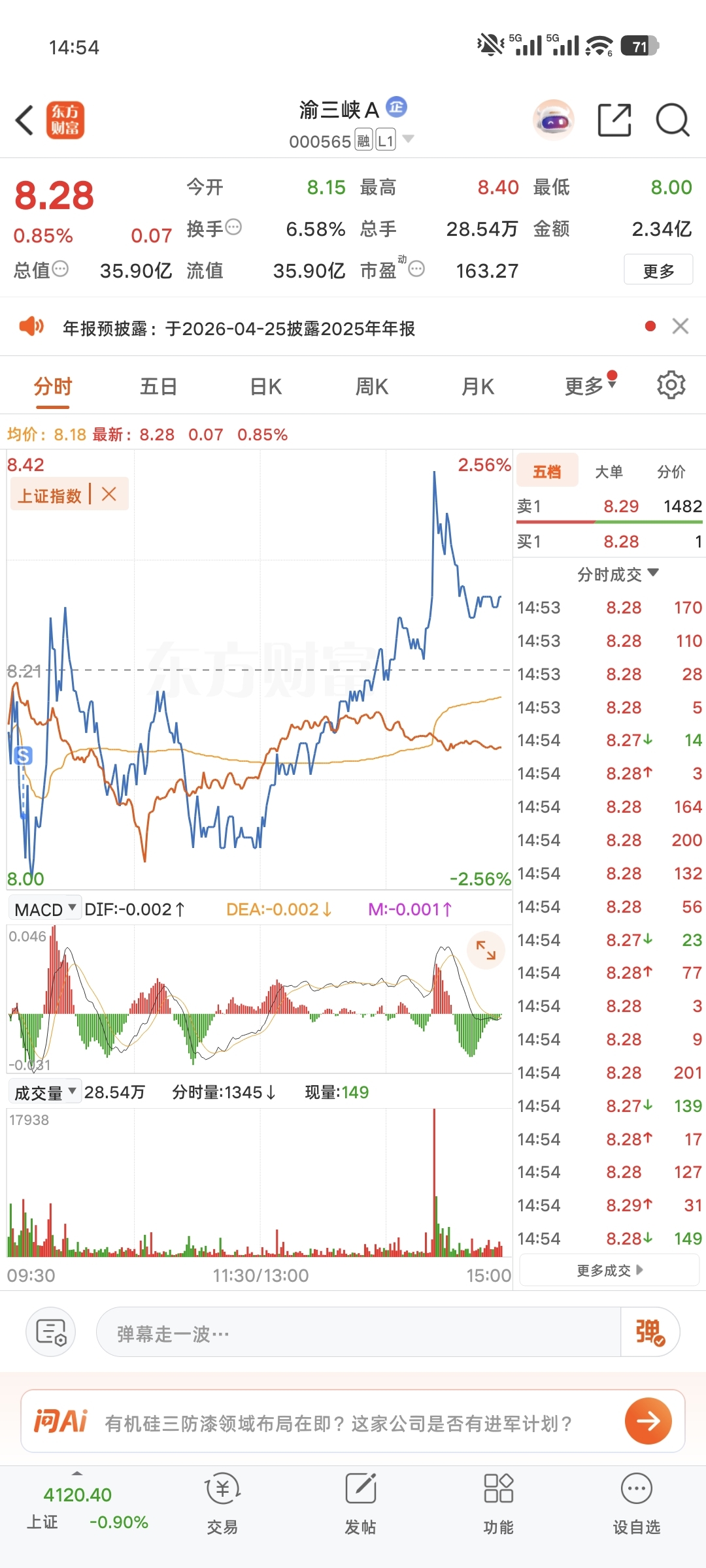 $渝三峡A(SZ000565)$ 有啥意思?