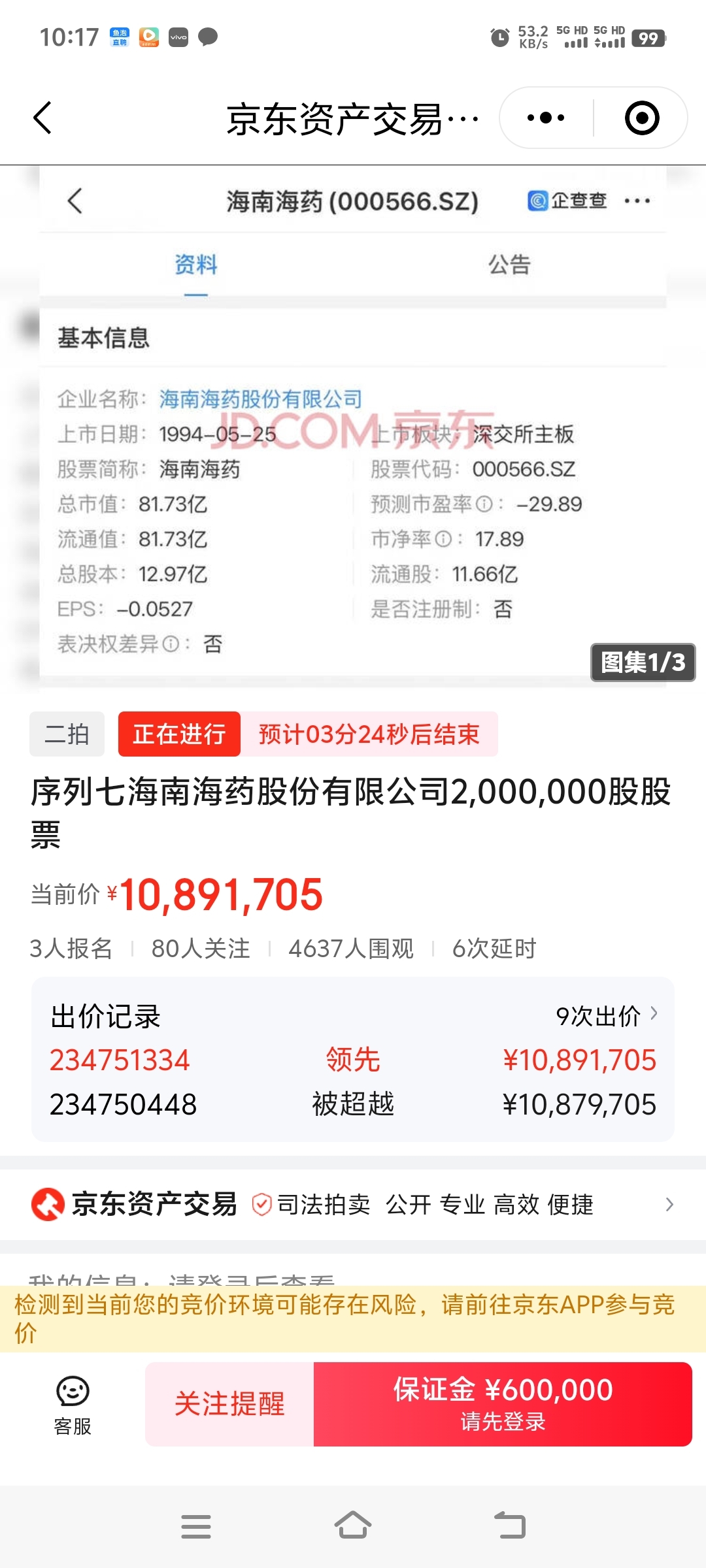$海南海药(SZ000566)$ 公司就二股东一个,持有1.33亿股,负债被迫股权拍卖。股份为什么要拆分10个大小不一的标来拍卖,大家仔细想,里面大有学问?