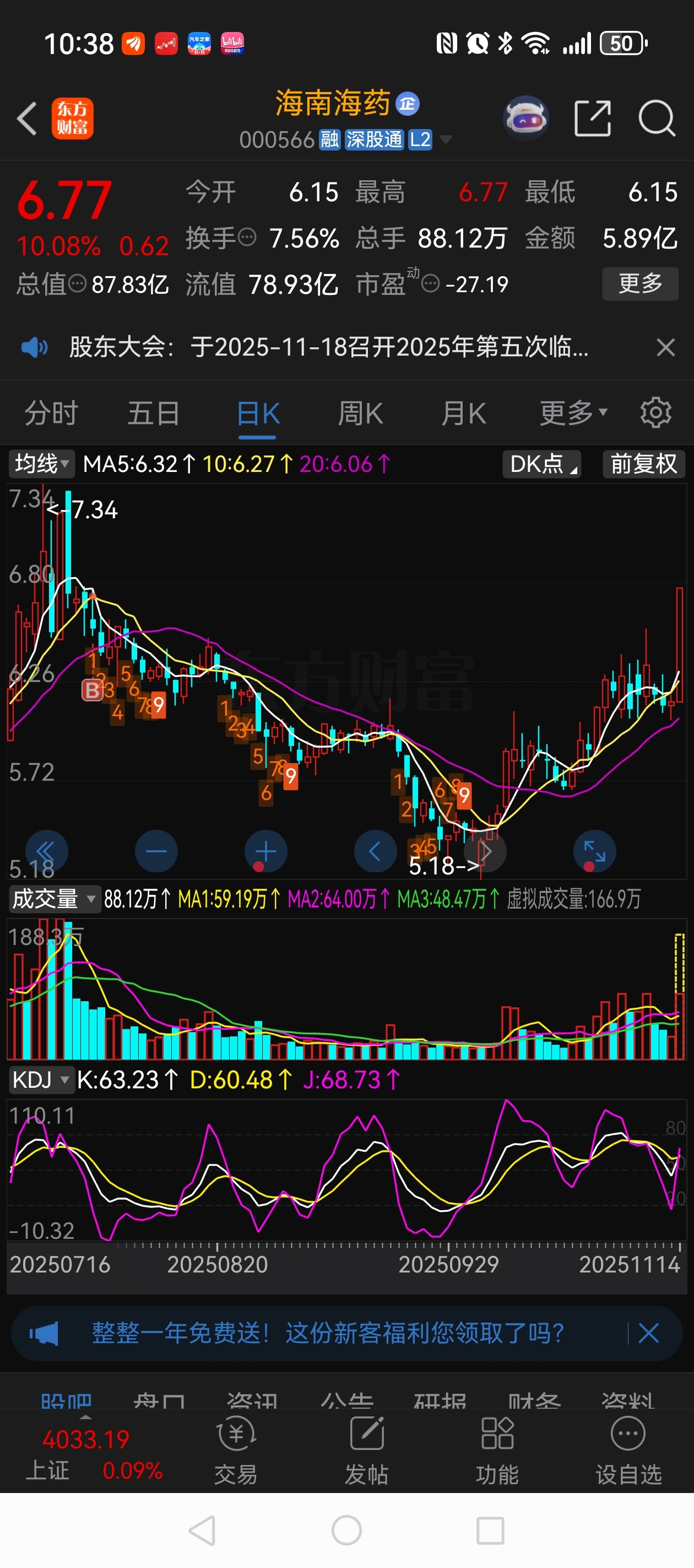 $海南海药(SZ000566)$ 套路了3个半月终于解套了