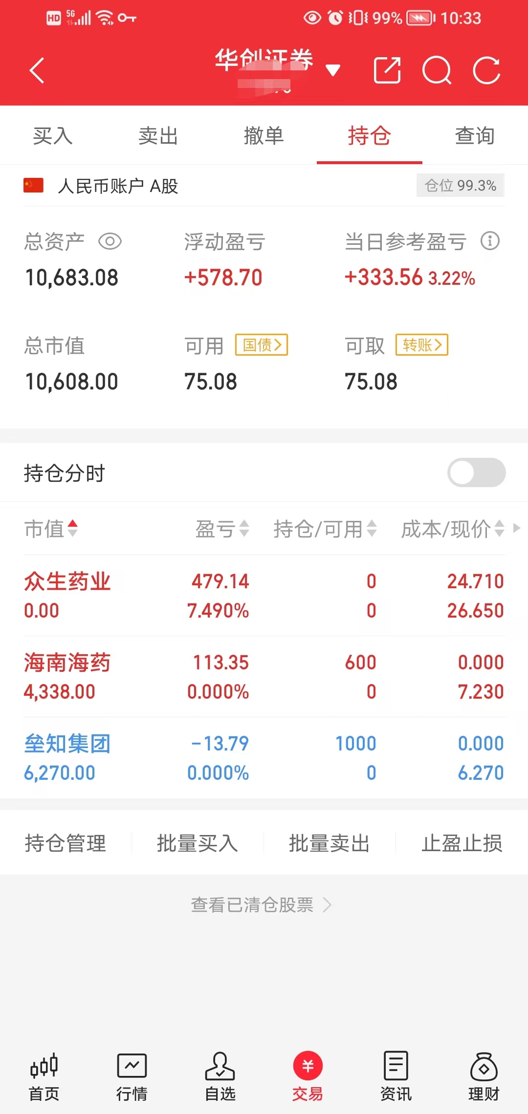 卖出众生药业,买入海南海药,垒知集团