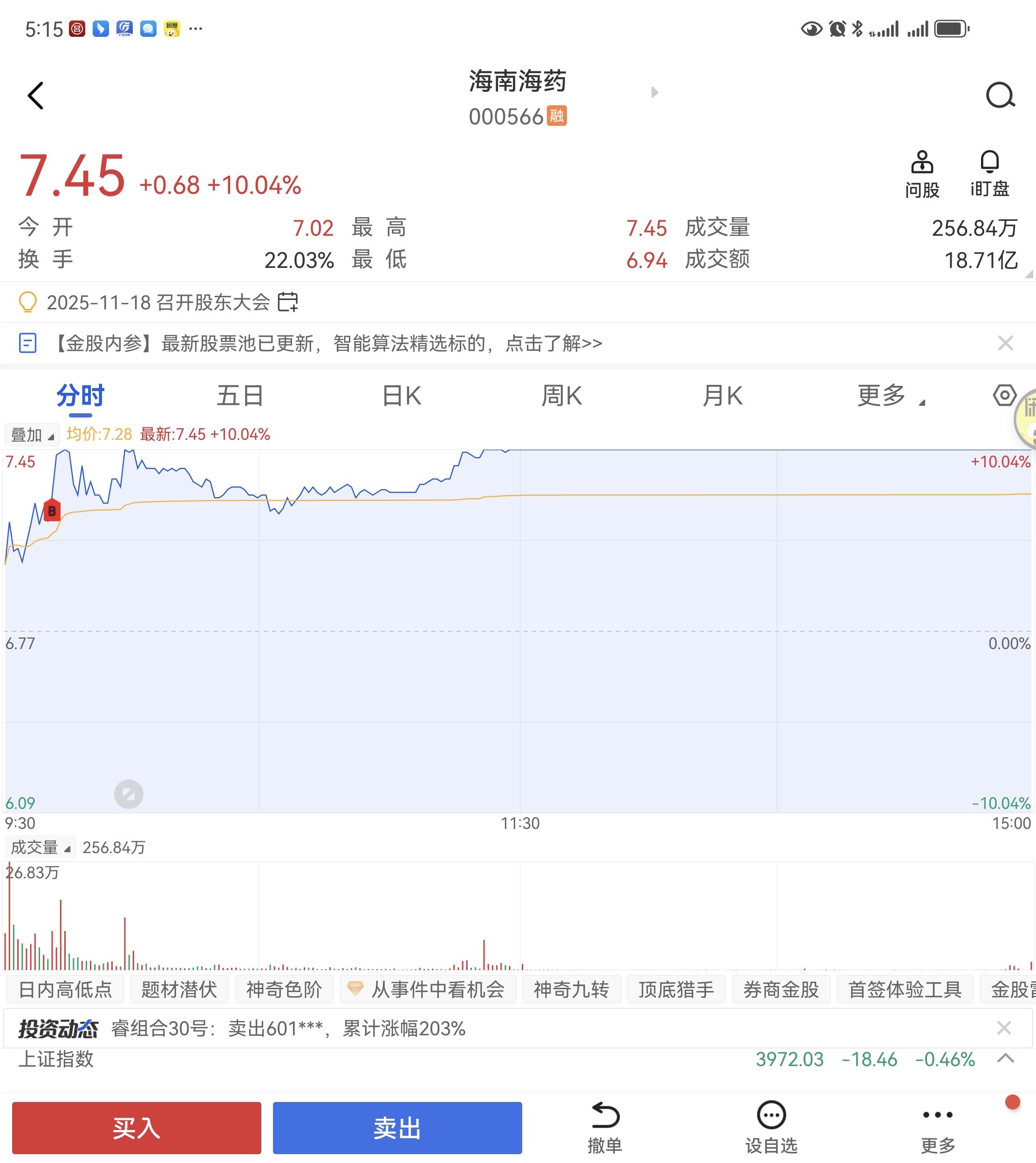 $海南海药(SZ000566)$ 一进二海南低位龙起飞。