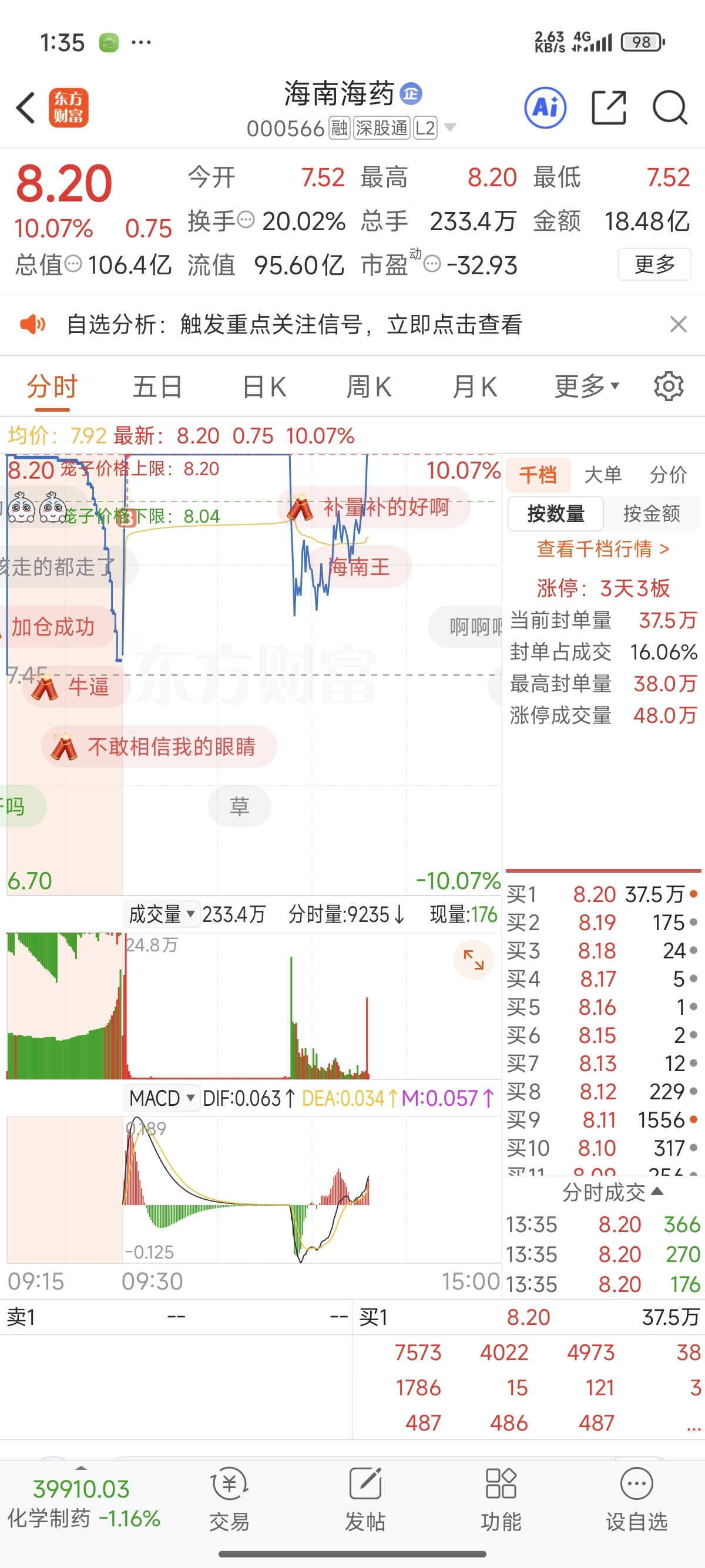 $海南海药(SZ000566)$ 赚不赚无所谓自己的想法对了无疑是最好的奖励