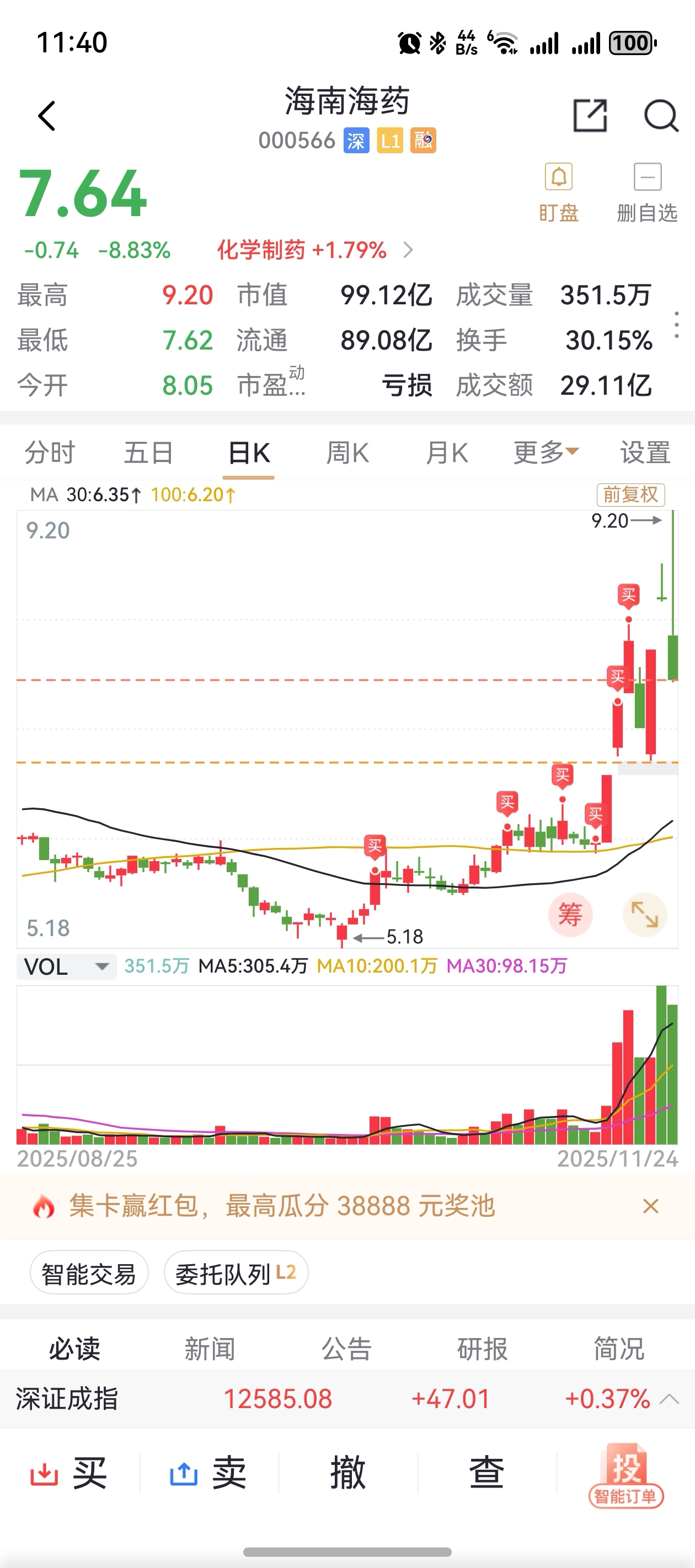 最后的两次加仓,有点回到了以前小散的思维,成本来到了6.93。上周五和今天两次触及涨停没有离场,是因为工作忙,也是因为贪心了。请大牛指点,是继续蹲着等待上扬,还是离场退出删除自选?