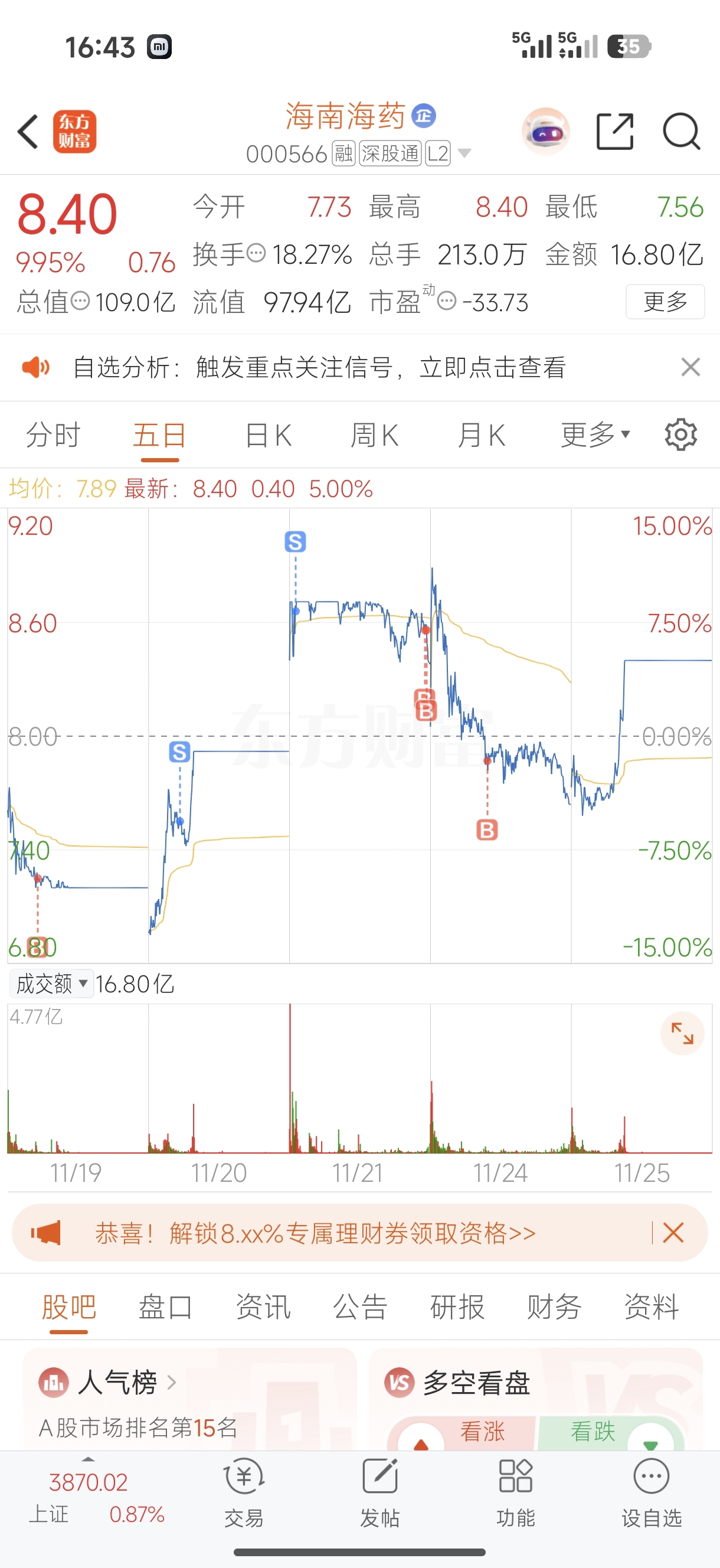 $海南海药(SZ000566)$ 每次都刀口舔血