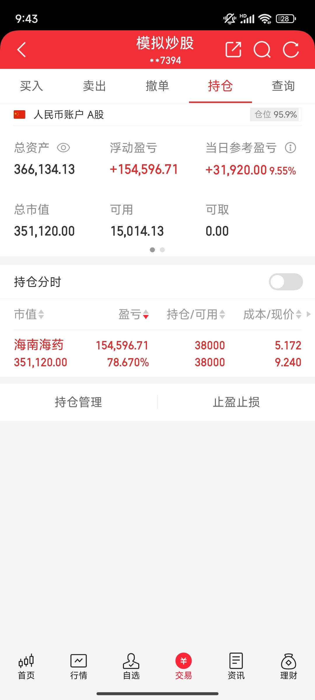 $海南海药(SZ000566)$ 你敢信,模拟拿了几年,成妖股了,还赚这么多