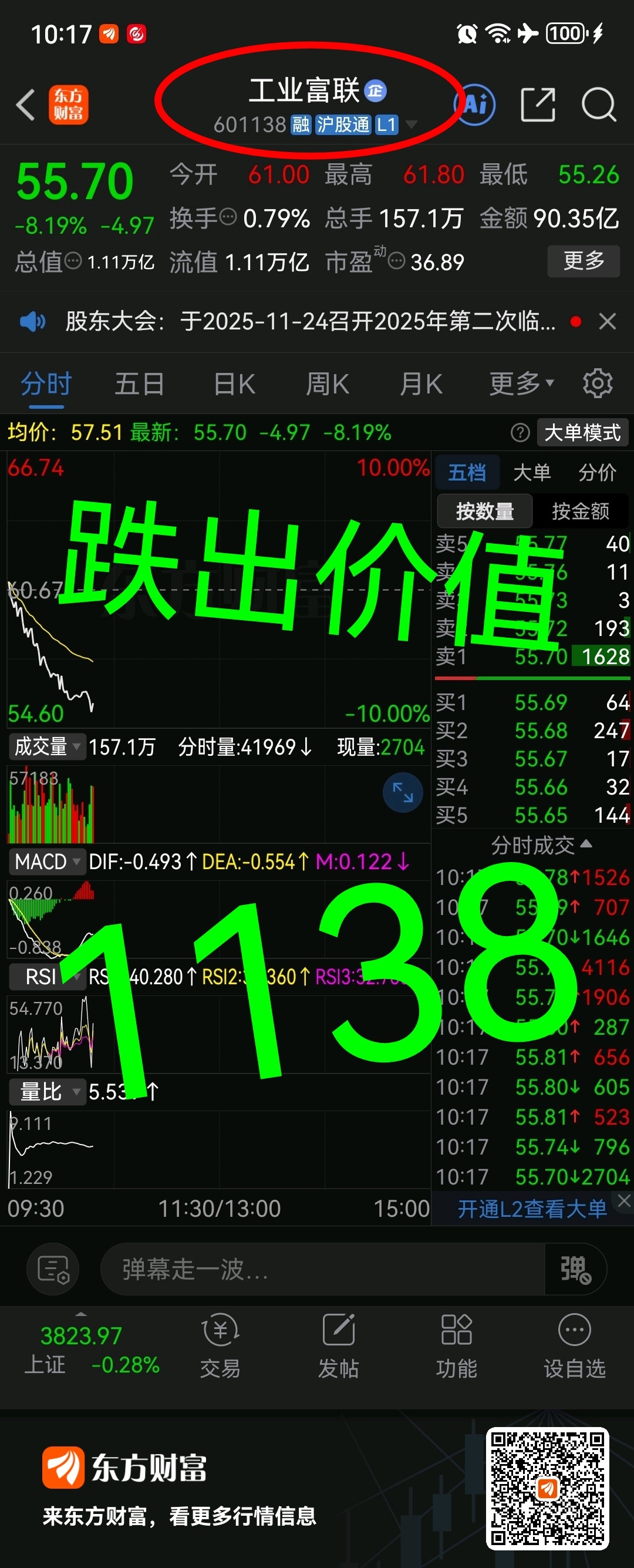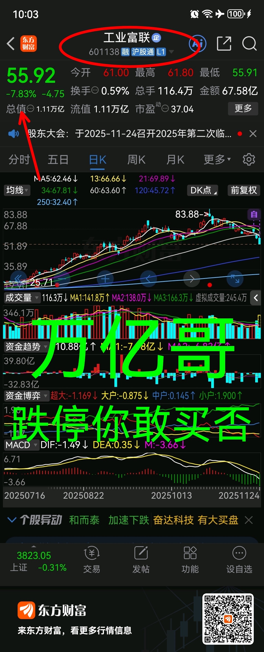 “万亿哥” 。601138 工业富联 技术配合消息面 迎合大盘 维稳 修复;你是否 高抛了 ~