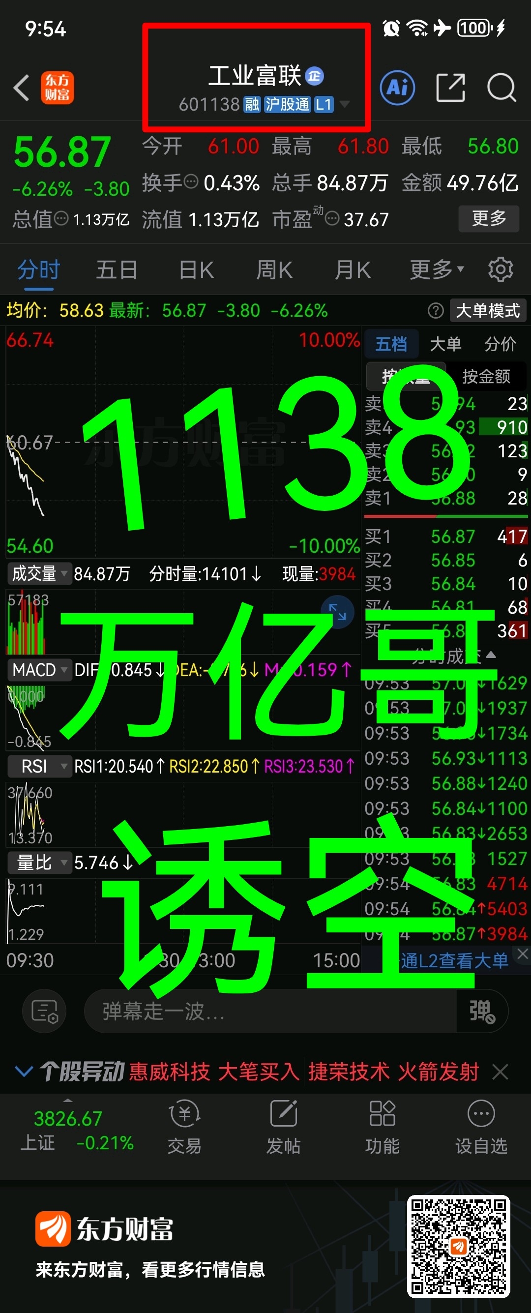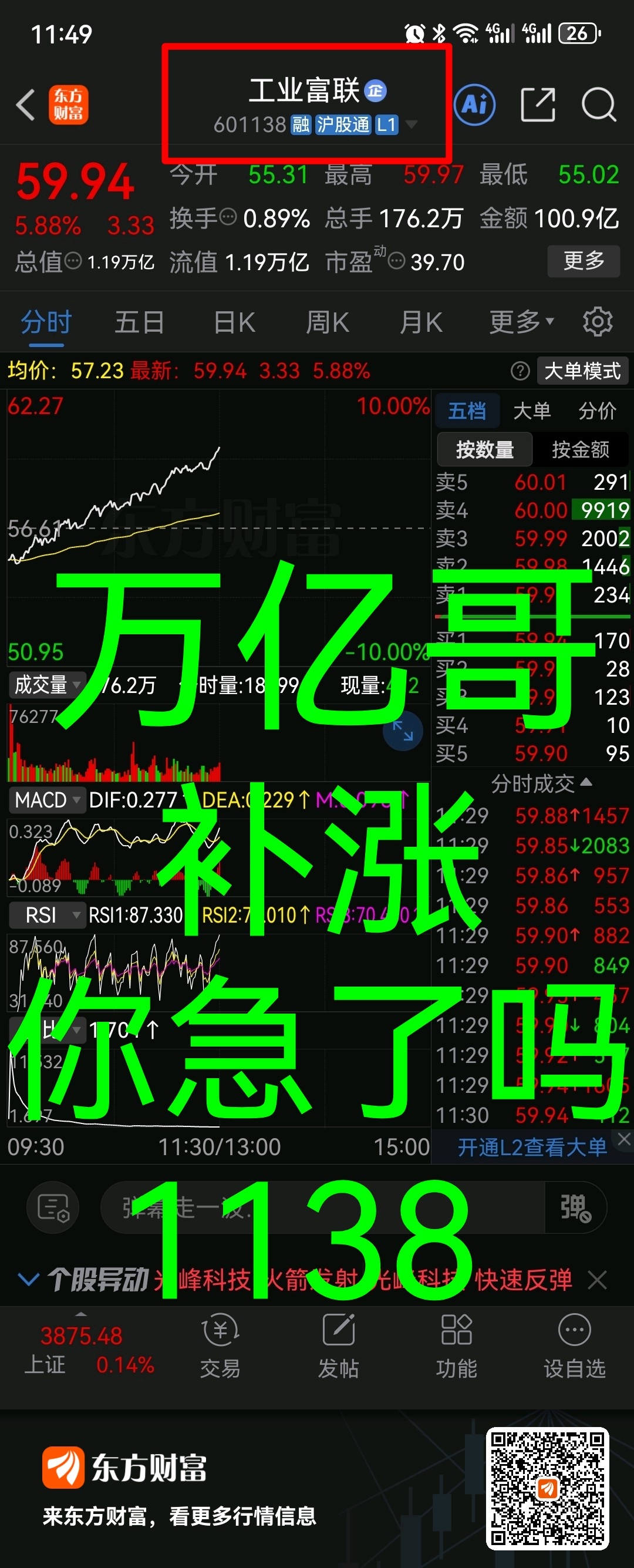 “万亿哥”。601138工业富联技术配合消息面迎合大盘维稳修复;你是否高抛了~.