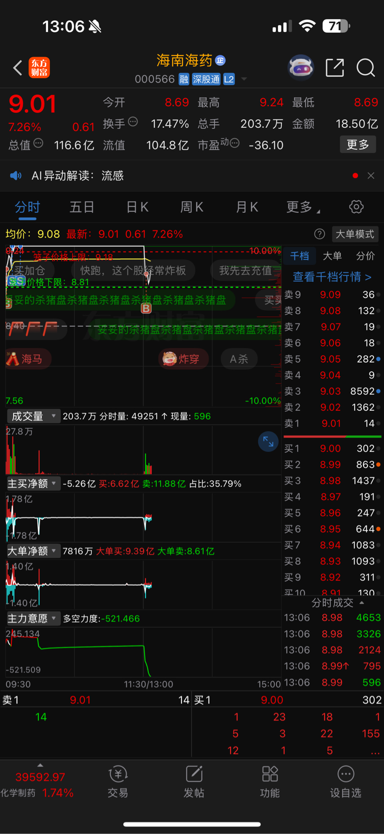 $海南海药(SZ000566)$ 只要不是一字板,就得T